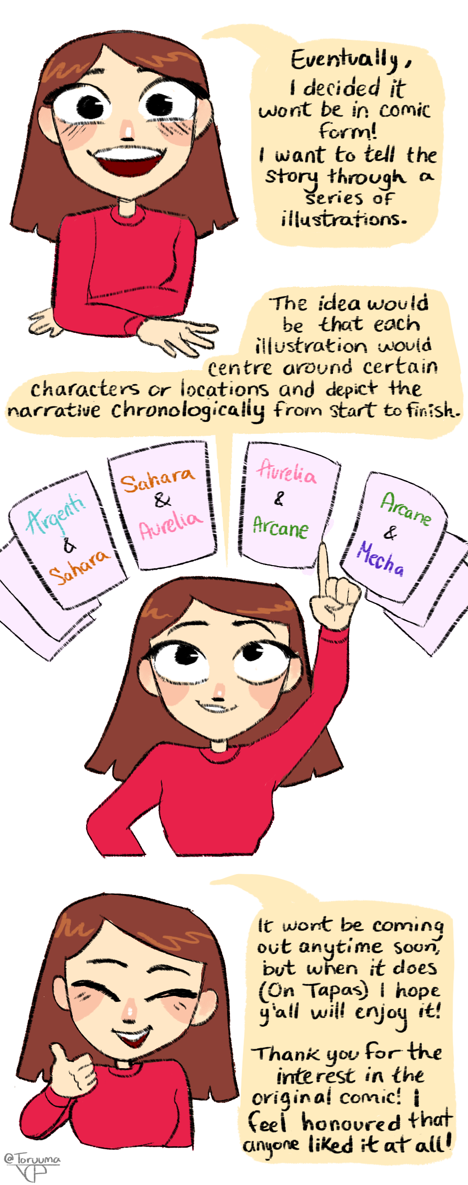 Hi everyone! Sorry for the long hiatus. I am not sure when I'll start / finish work on the illustrations (I'm still just as busy as I was when I originally made the comic, if not more, R.I.P.) but I hope to have them out before the end of 2021.