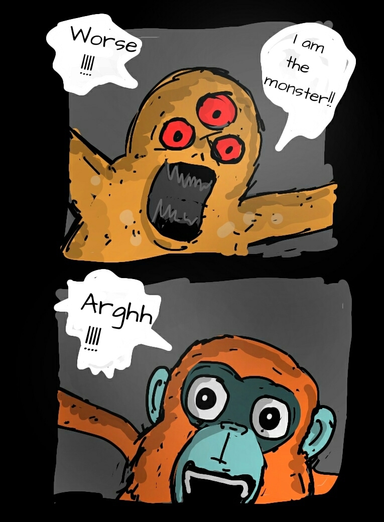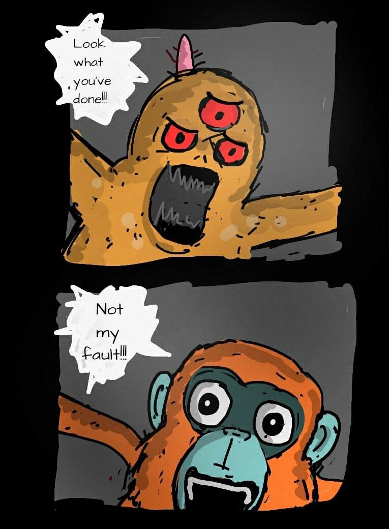 3. A Lutung monkey named Fersus realized that how important was not just to eat meals but also how to enjoy them, especially when it came to human made foods. So they vowed from that day that they would go to chase any delicious food in this world no matter how or who or what that became their obstacles.