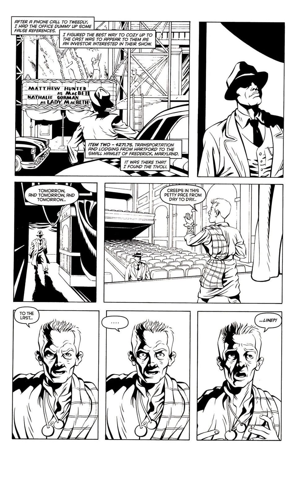 When a fire stalls a swank production of MacBeth, our man with the "action-packed expense account", insurance investigator Johnny Dollar, is called in. On the scene he meets a gaggle of thespians, who all have their reason to see the production fold. But the felonies start to stack up, as arson is followed by murder! Can JD see this through to the final curtain without having his own murder listed in this famous ledger?