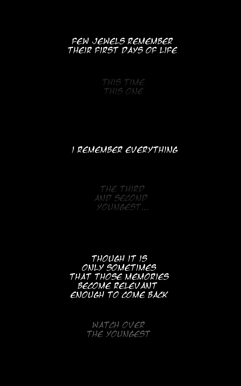 Being the youngest and most frail of his companions, Chrysocolla is shut away from the rest of the world, destined to spend the rest of his life under the protection of his home. He is left to only wonder what could be out there...but not for long.