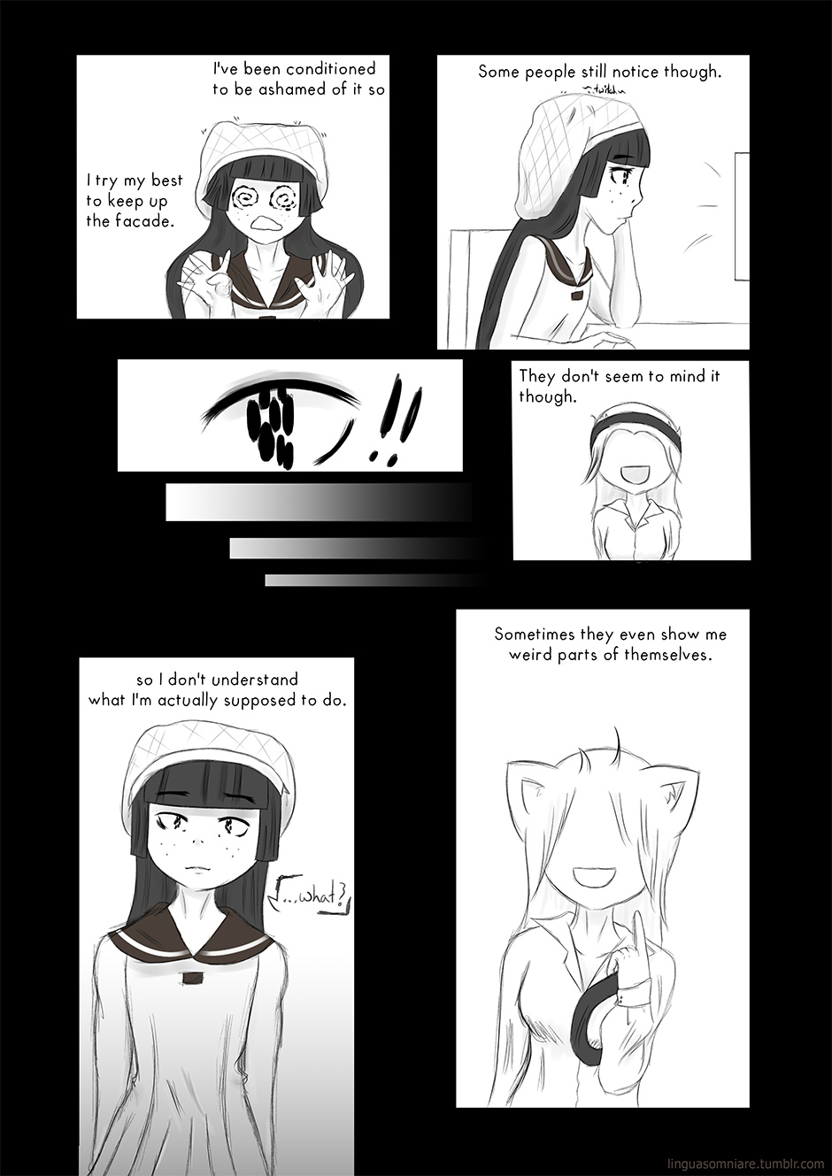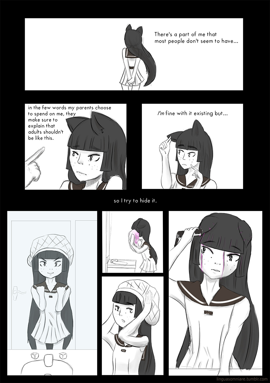 Anyway, thought I'd start off by explaining this kid's ears. In her universe they're not rare but it's considered childish if you have them as an adult so you're expected to hide them in formal/business settings...at least that's what this child has been told.