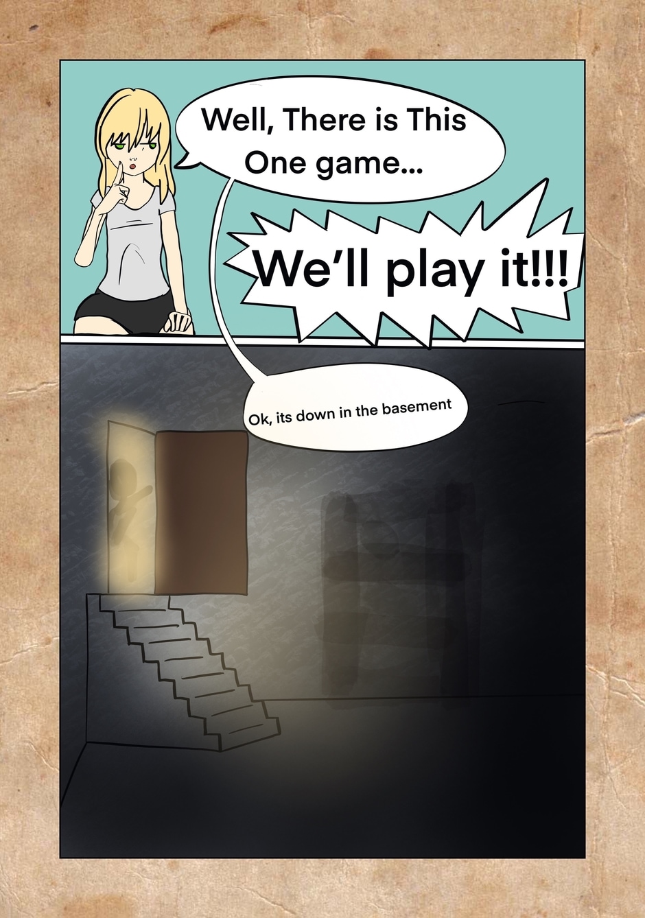 Oh, I see. "Let's go to the basement. Nothing bad will happen there. Nope." Haha! This is great!
