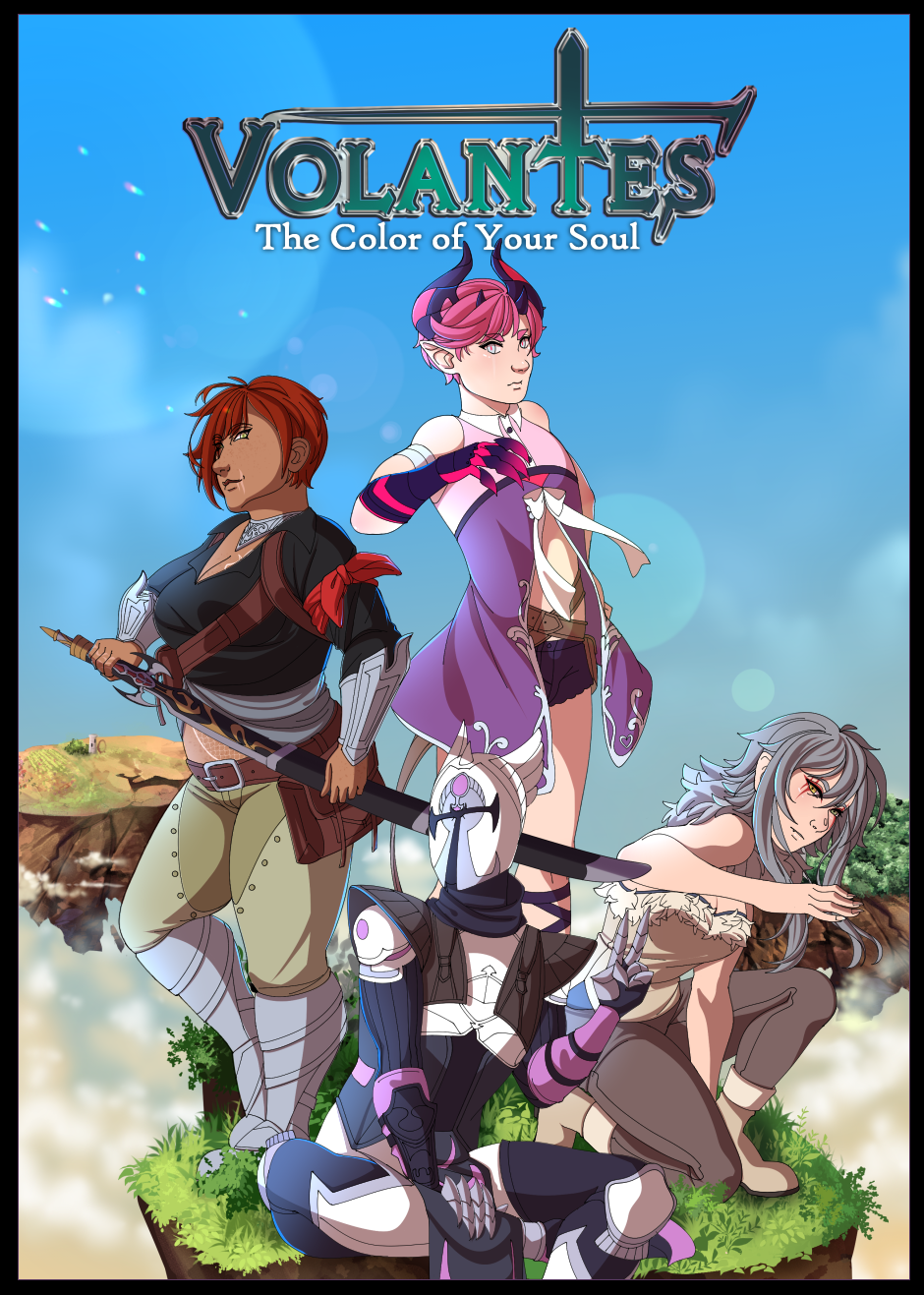 Welcome to Volantes! In this world of floating islands and unpredictable magic, you'll find ancient mysteries, eccentric characters, and varying cultures with unique inventions. Join four travellers; Lanette, the dwarf with the large shoes of her mother to fill; Vellis, the horned noble on the run; Rain, the human raised by wolves and shrouded in mystery; and Tobias, the suit of armor created to serve a King.