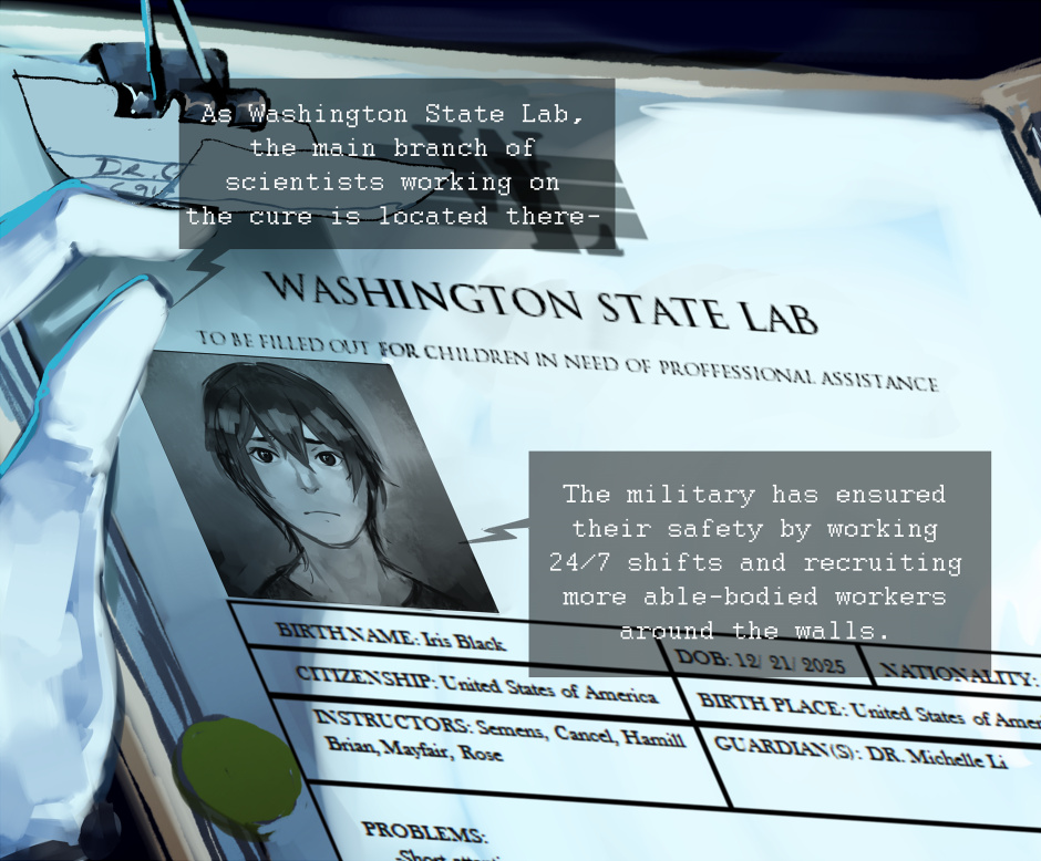 Iris is a young man with the gift to bring pieces of artwork into reality. 5 years into an apocalyptic outbreak, he's holed up in a lab that shelters "problem" children. Between his failed experiments, deteriorating mental stability, and being ridiculed by other members of the lab, he doesn't think life could get any worse. Life agrees to disagree.
