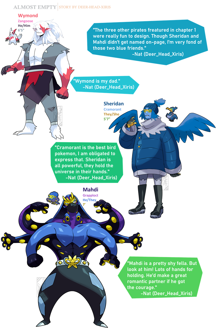 Almost Empty is a Pokemon Gijinka comic based in the Unova region, inspired by the Pokemon Black and White characters and lore. This story deals with themes of trauma, forgiveness, and coping with loss.