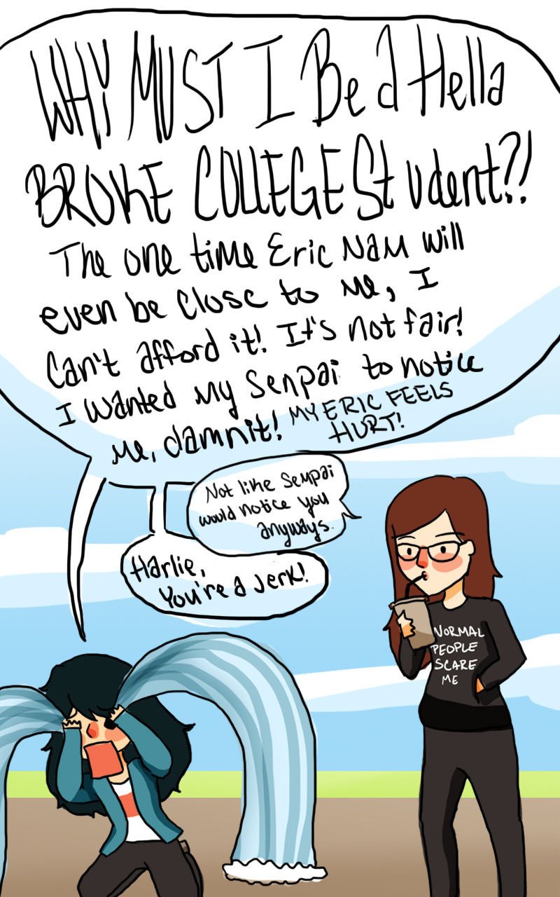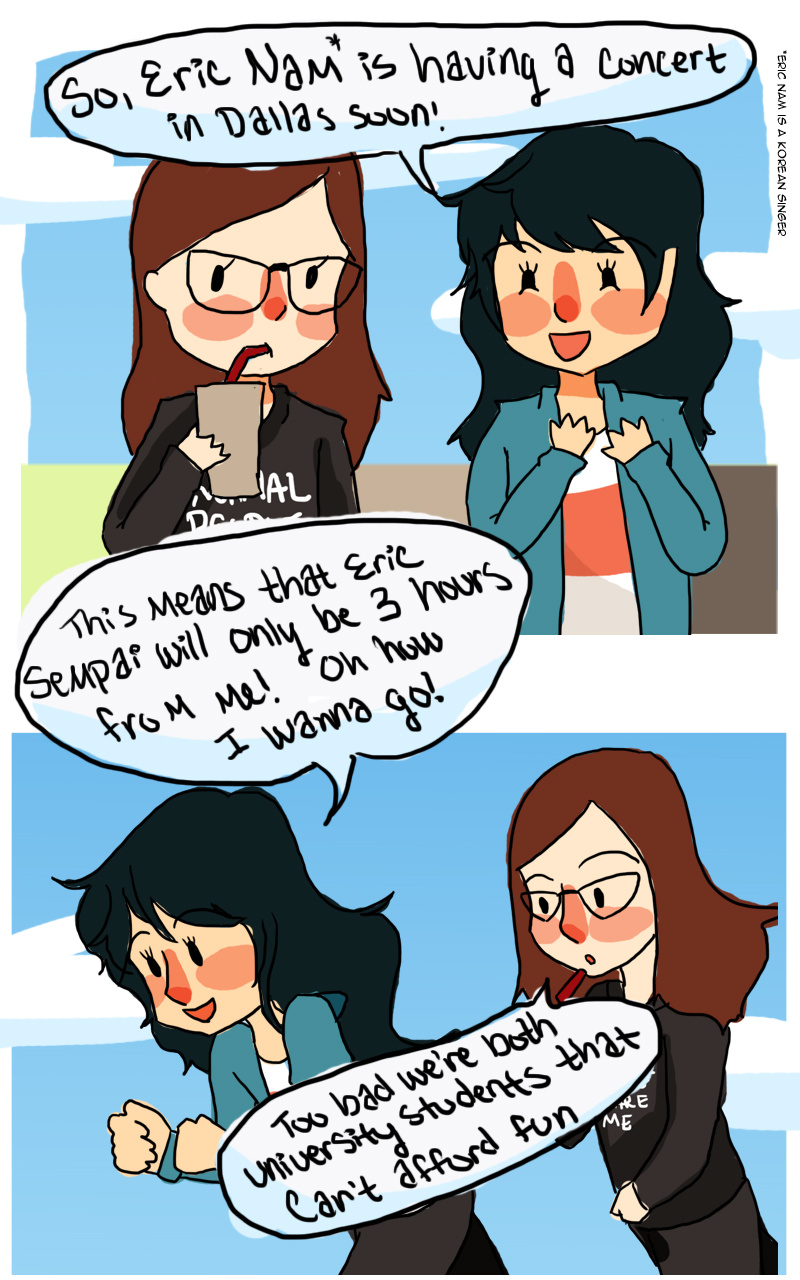 A while ago, Eric Nam had a concert in Dallas, Texas and I really wanted to go! But I couldn't afford it :( Then my friend said that senpai would never notice me, which made me sad