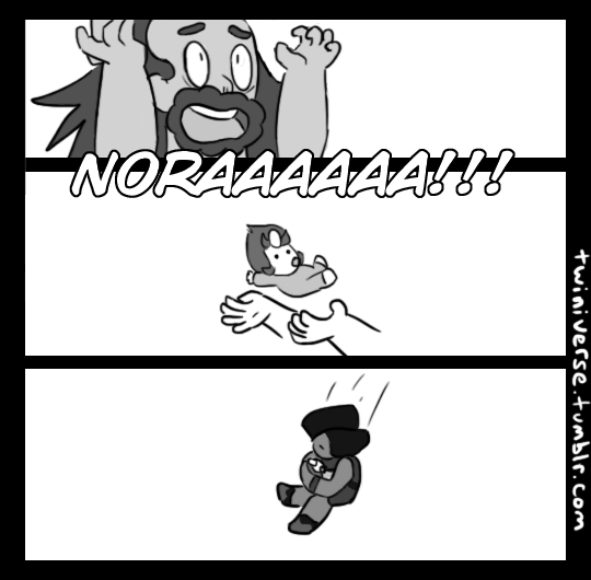 Os gêmeos nascem quando menino e menina, chamados Steven e Nora. Nem Pearl nem Rose planejaram qual bebê recebeu qual Gem, então foi apenas coincidência que Steven pegou Gem e Rose e Nora pegaram Pearl.