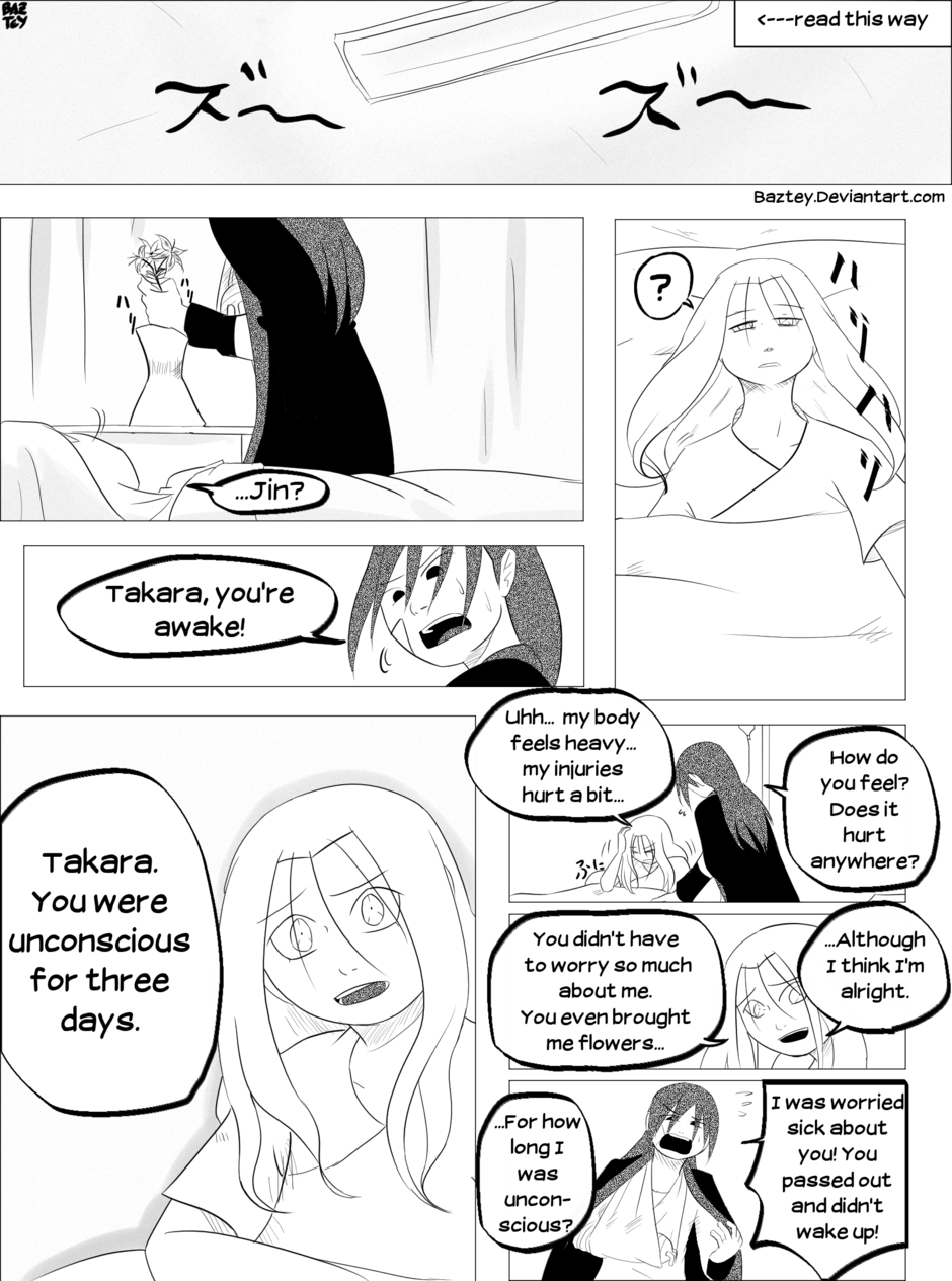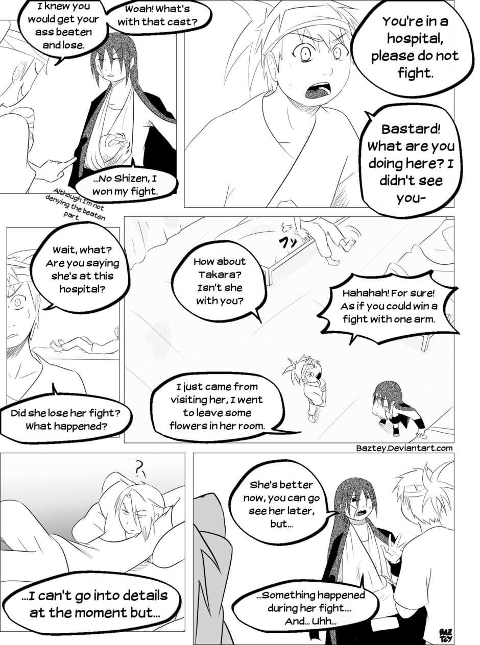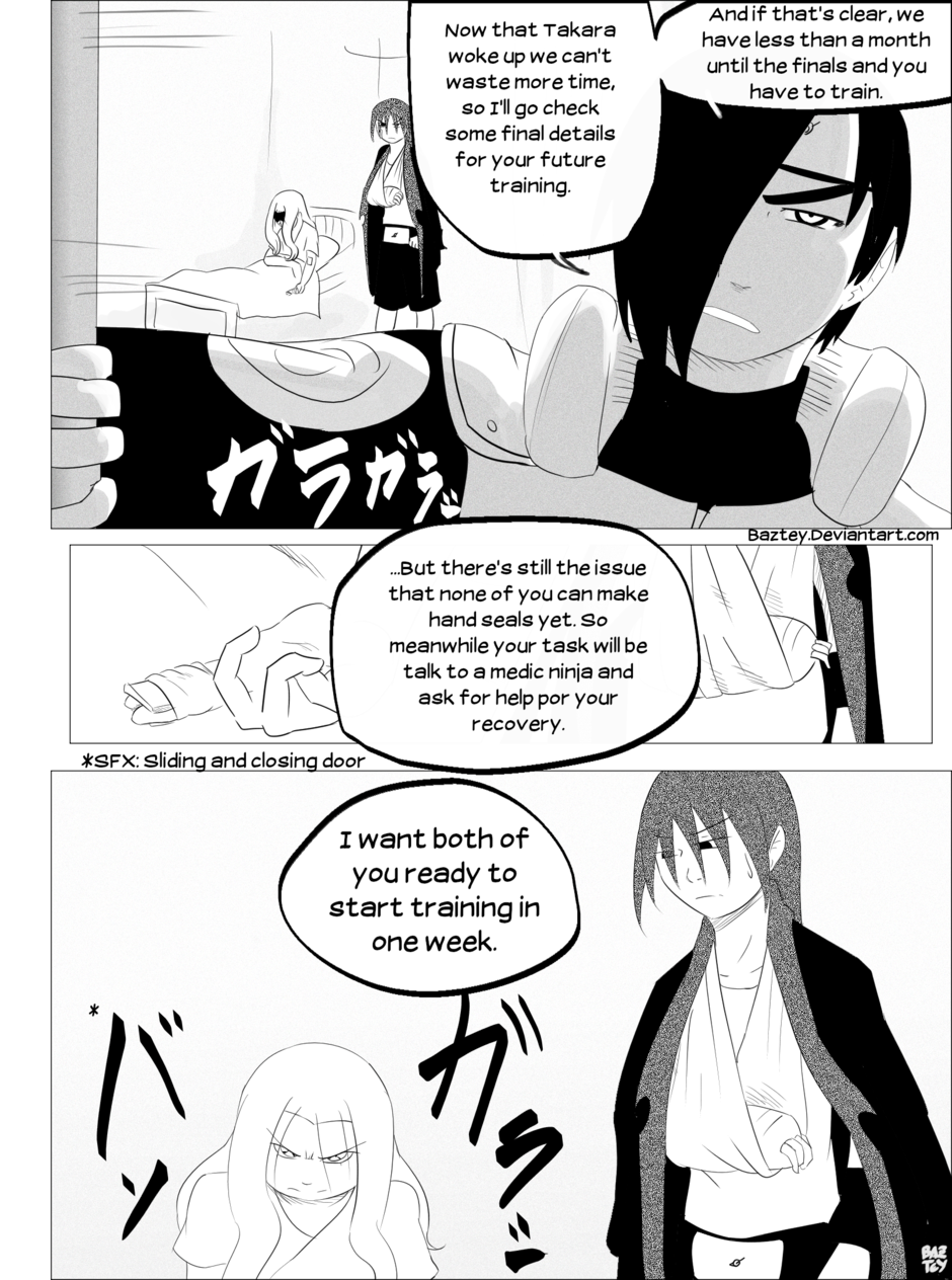 Takara has shown her decision of quitting her ninja life after the rough events she lived during the chuunin exams, but while Jin tried to convince her otherwise she suddenly fell unconscious.