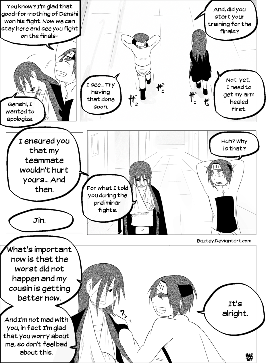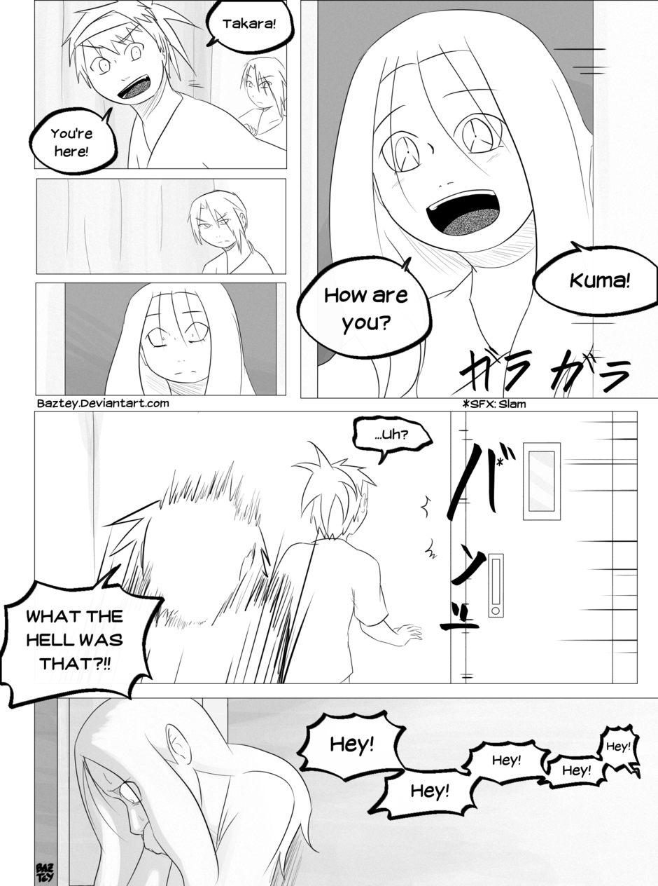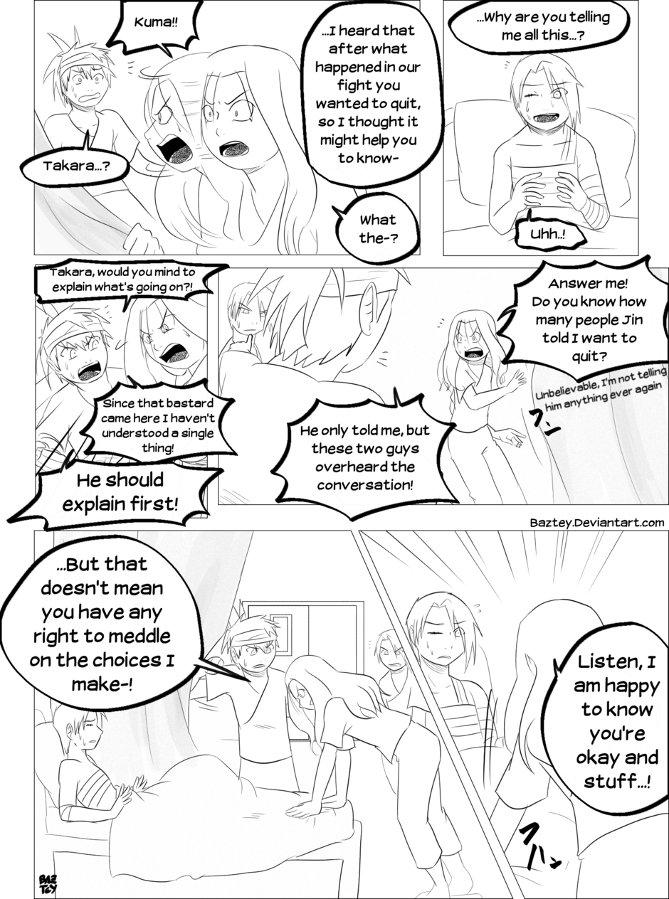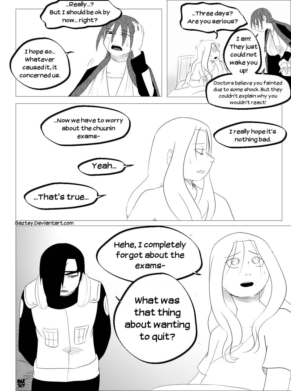 Takara has shown her decision of quitting her ninja life after the rough events she lived during the chuunin exams, but while Jin tried to convince her otherwise she suddenly fell unconscious.