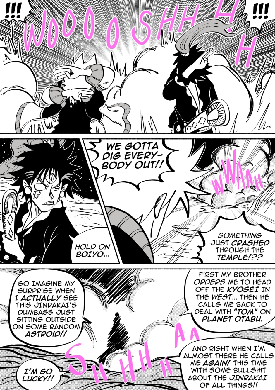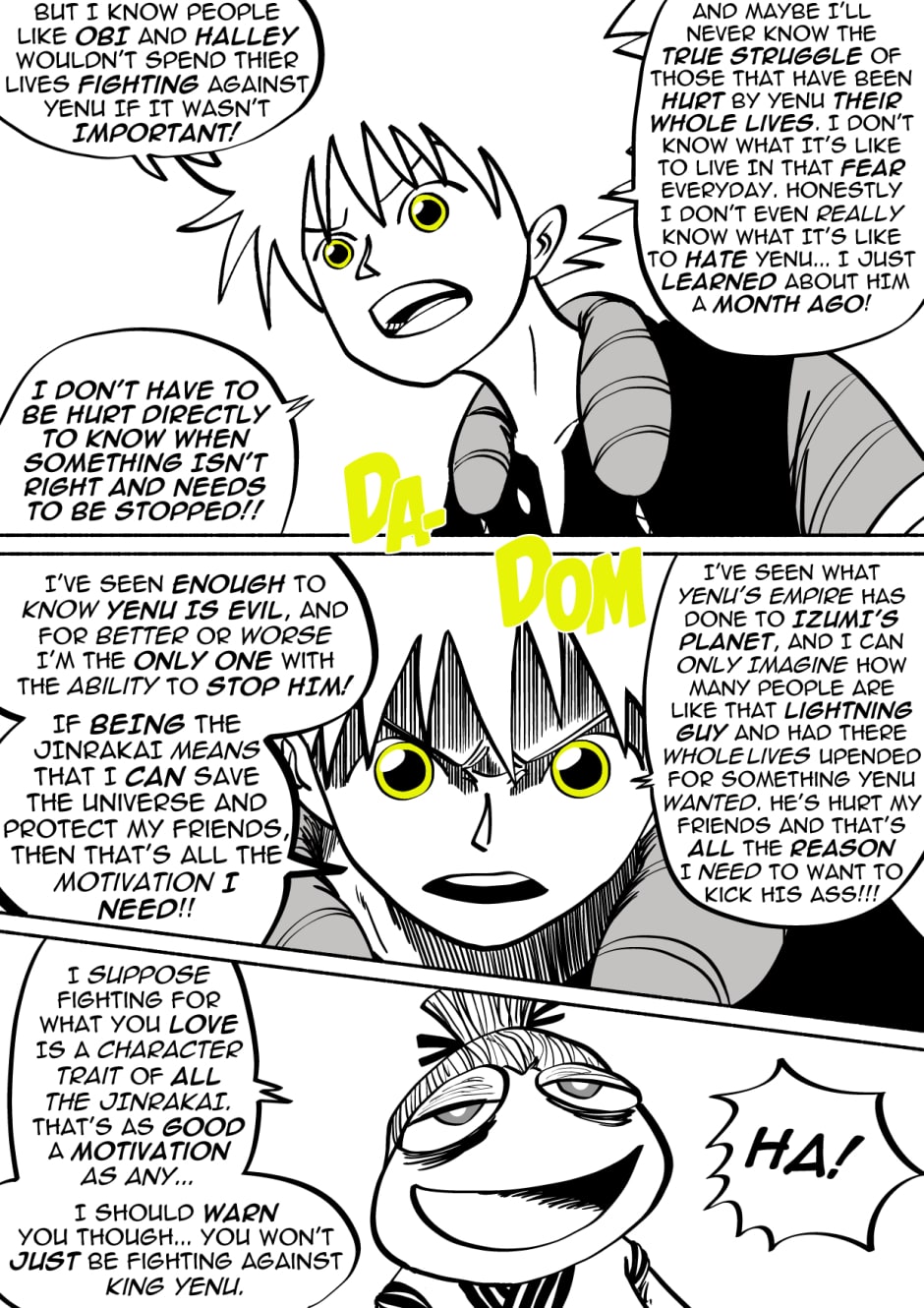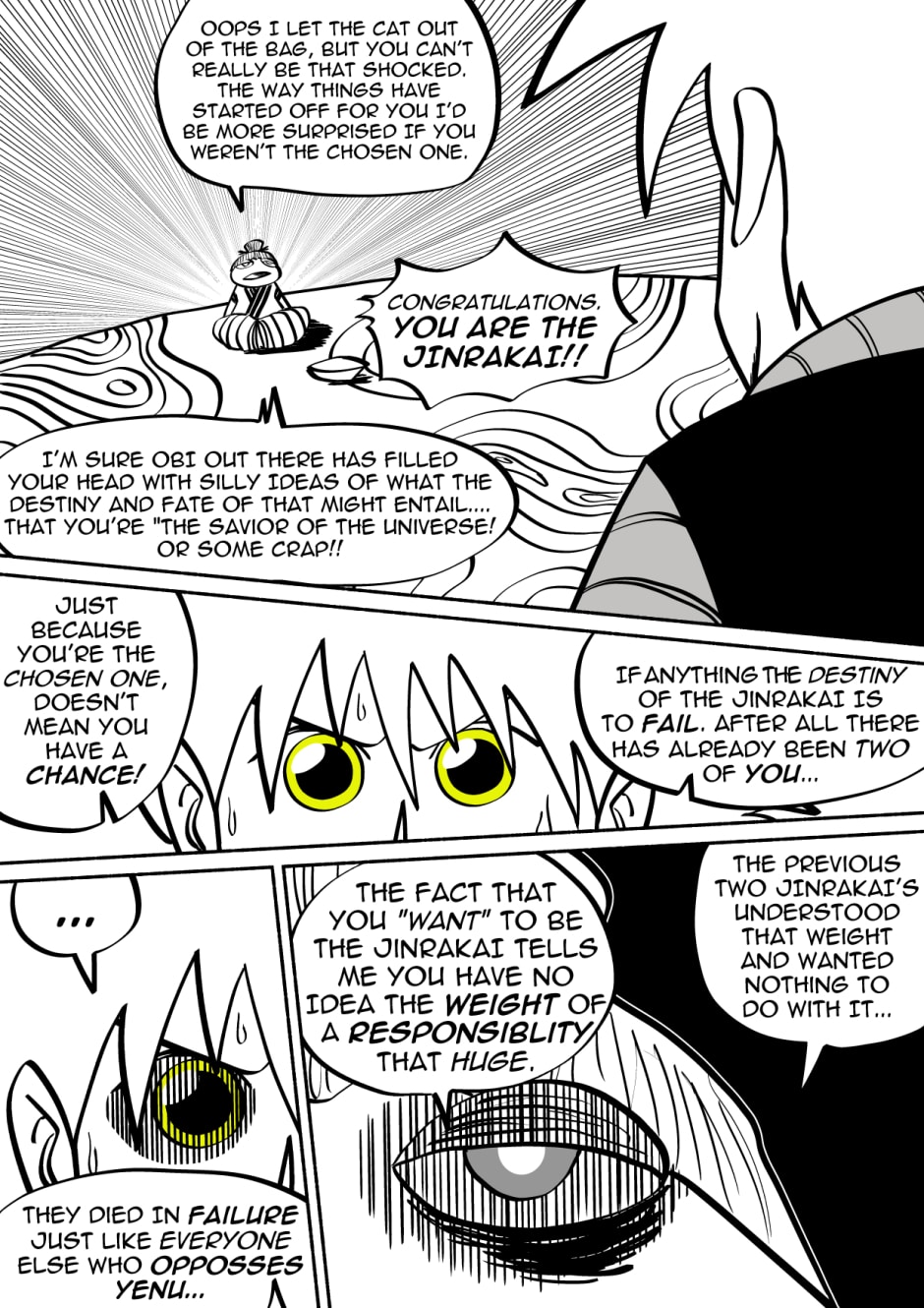 Welcome to the new space opera that is JinRakai: Savior of the Universe! Read along as Bit's peaceful life on Earth must come to an end because unbeknownst to him, Bit is actually the Legendary JinRakai!! Born with the powers of the Northstar, Bit must race across the Cosmos to the Northstar, and defeat King Yenu, the evil ruler of the Celestial Kingdom! Can Bit live up to the title of Savior of the Universe?