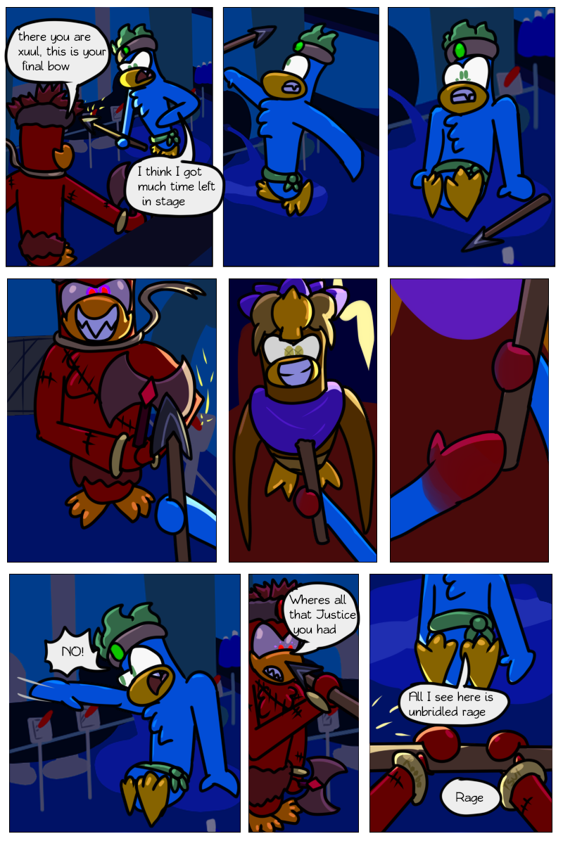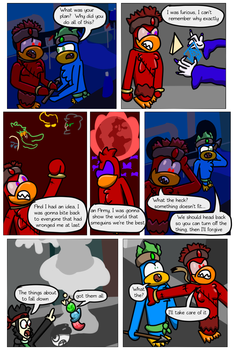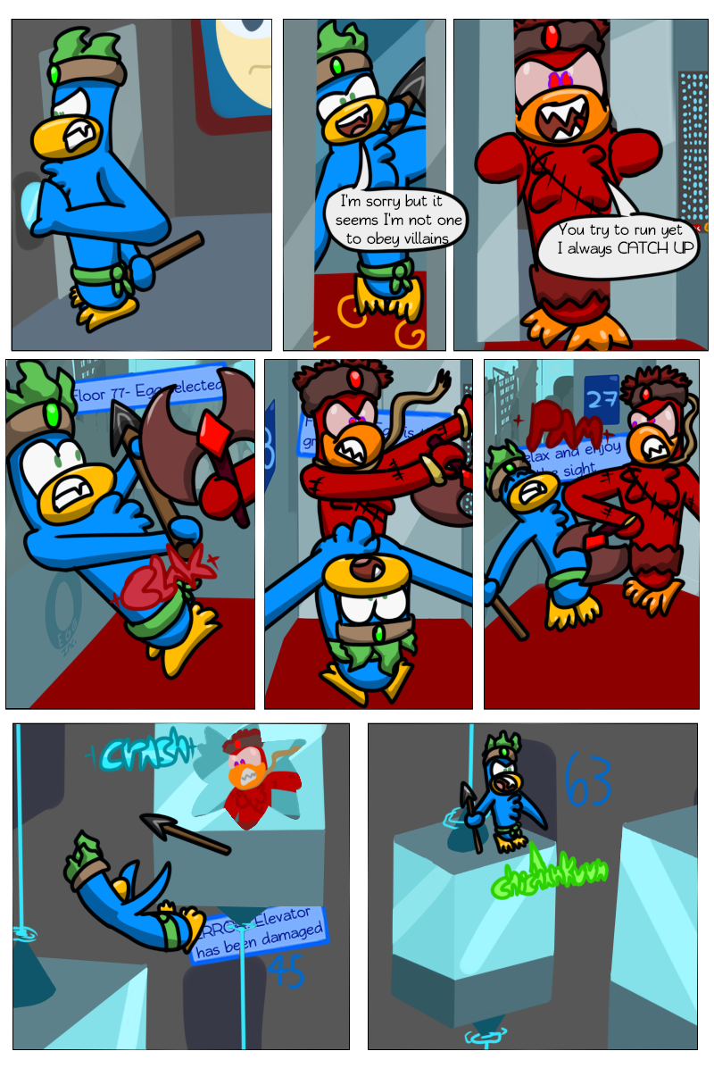 At last we've reached the end point of this "collection" of comics. Petey(LittlePenguin) is about to fight his uncle, nicknamed PofEveil(real name: tsul). This fight will decide the destiny of SuperCrazy City