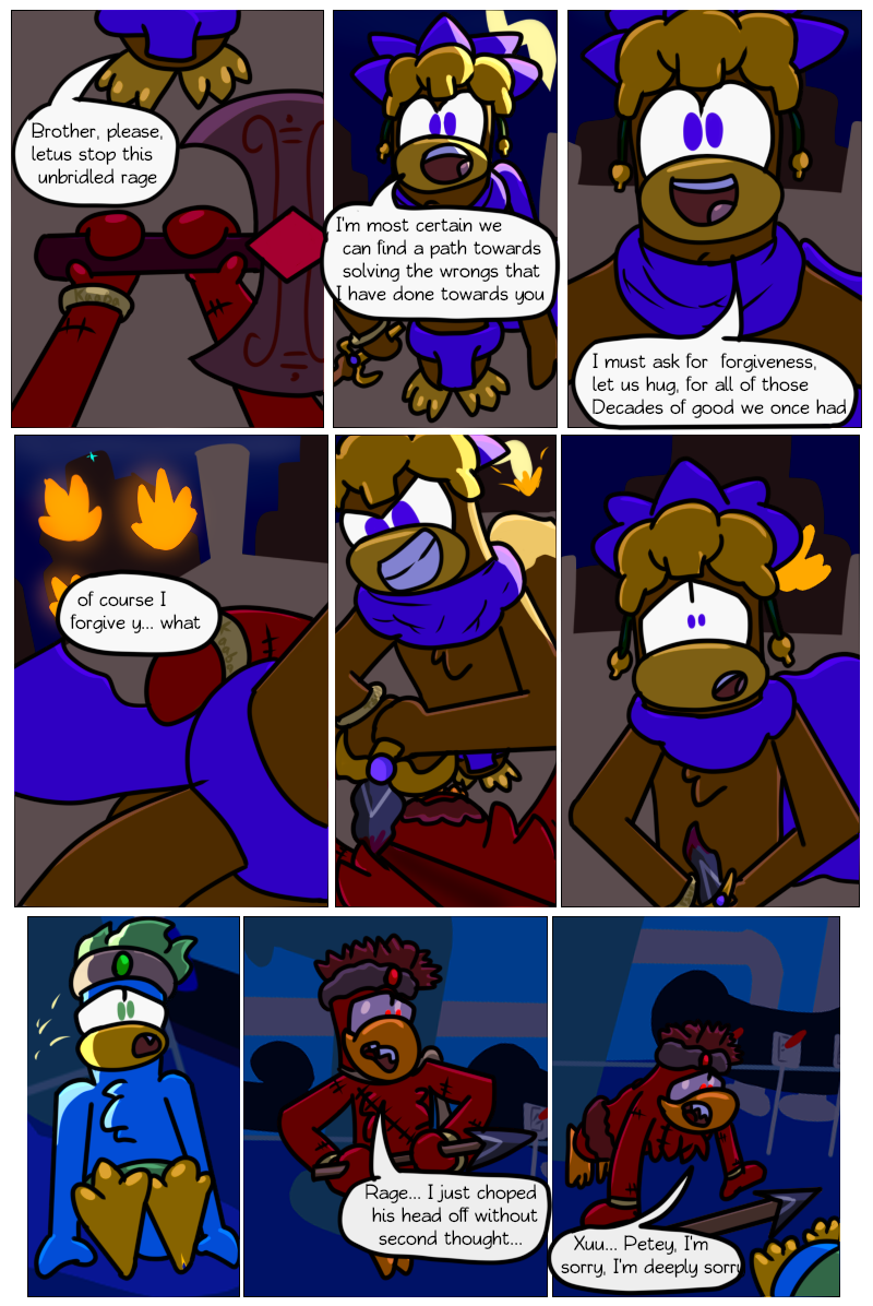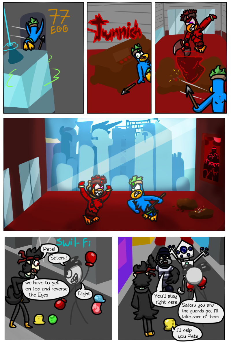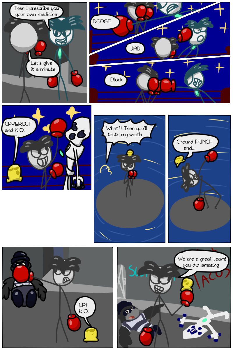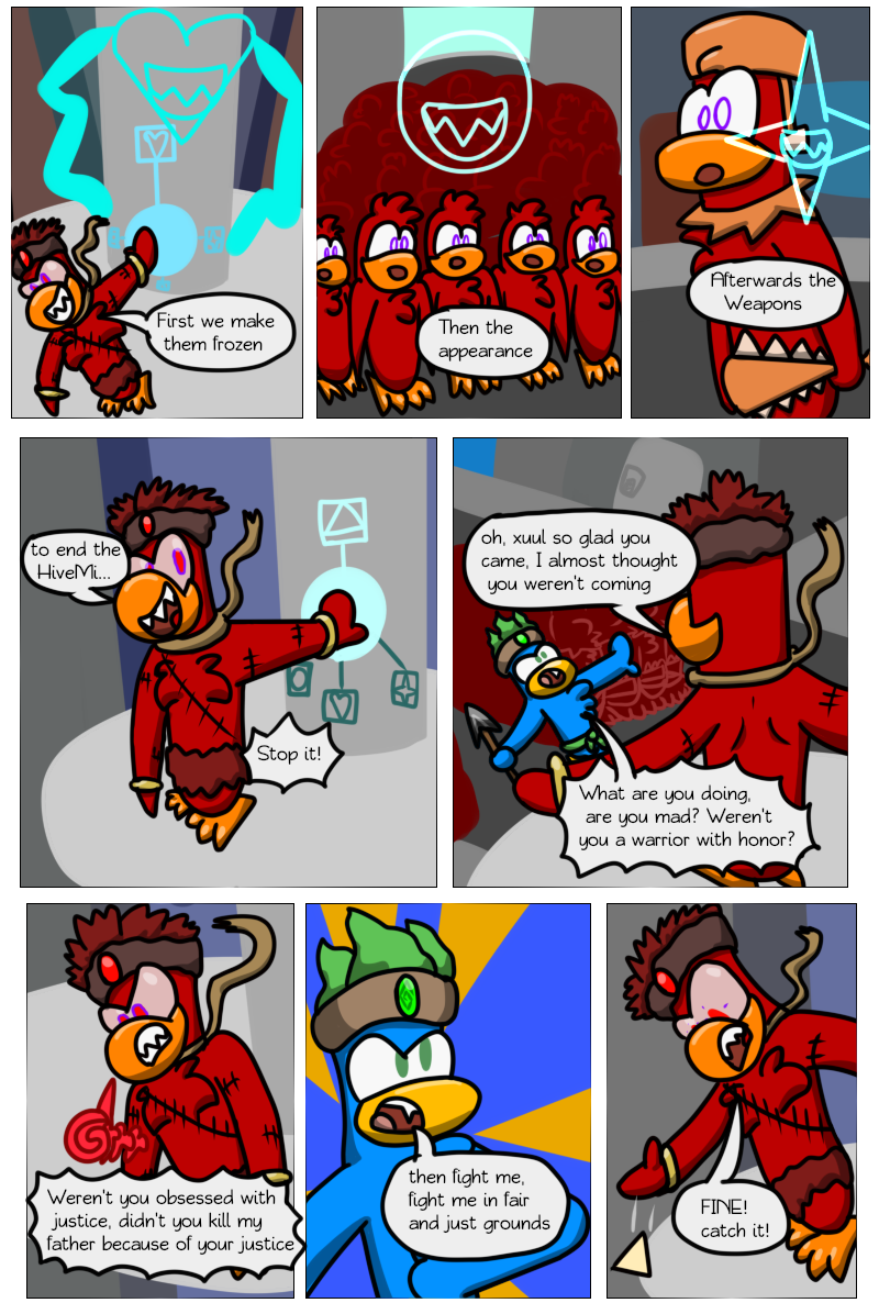 At last we've reached the end point of this "collection" of comics. Petey(LittlePenguin) is about to fight his uncle, nicknamed PofEveil(real name: tsul). This fight will decide the destiny of SuperCrazy City
