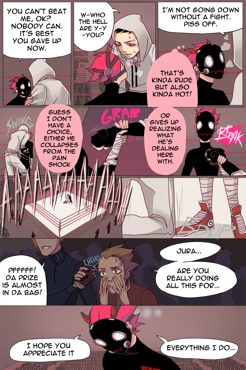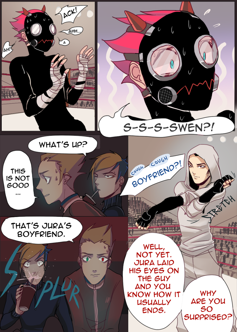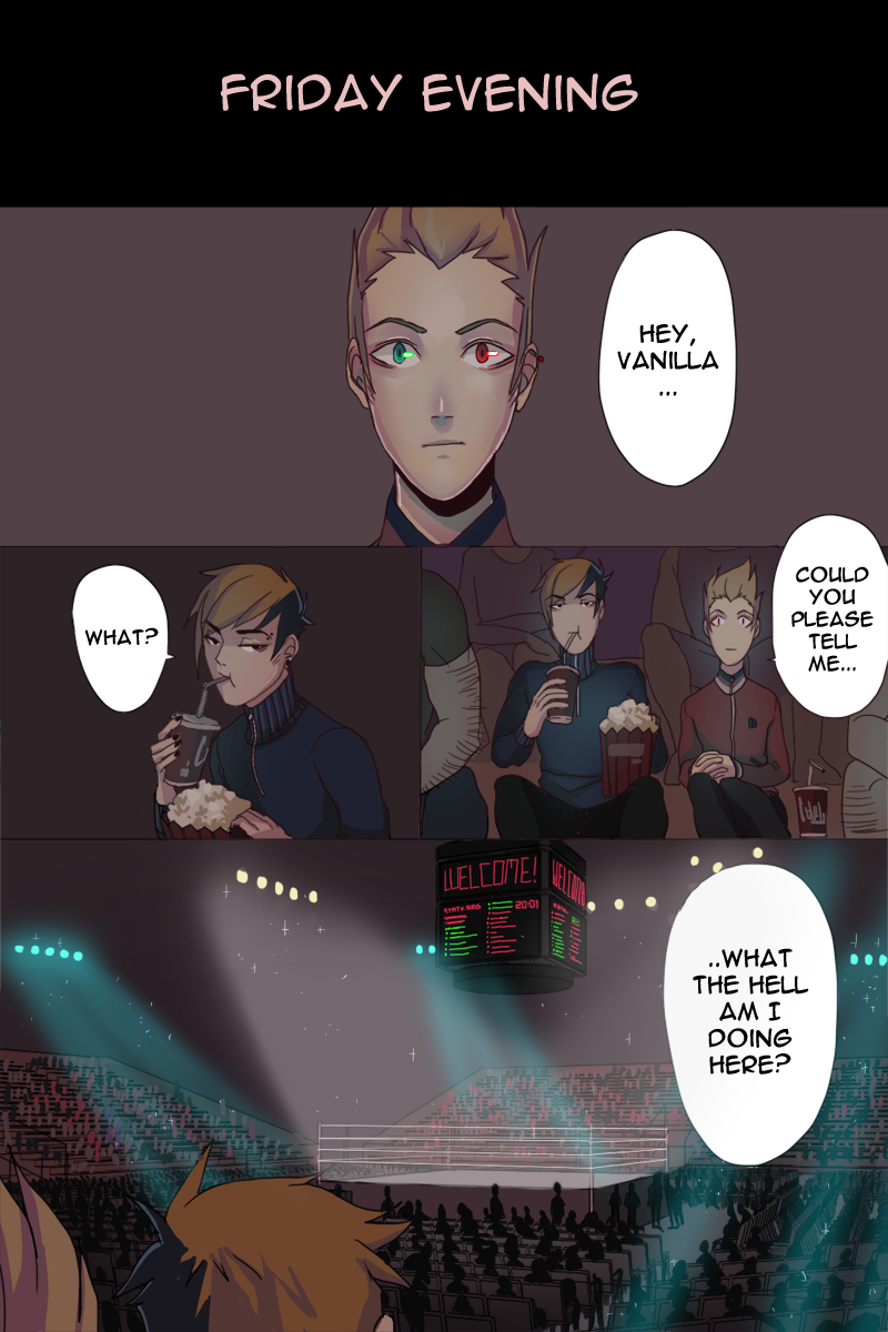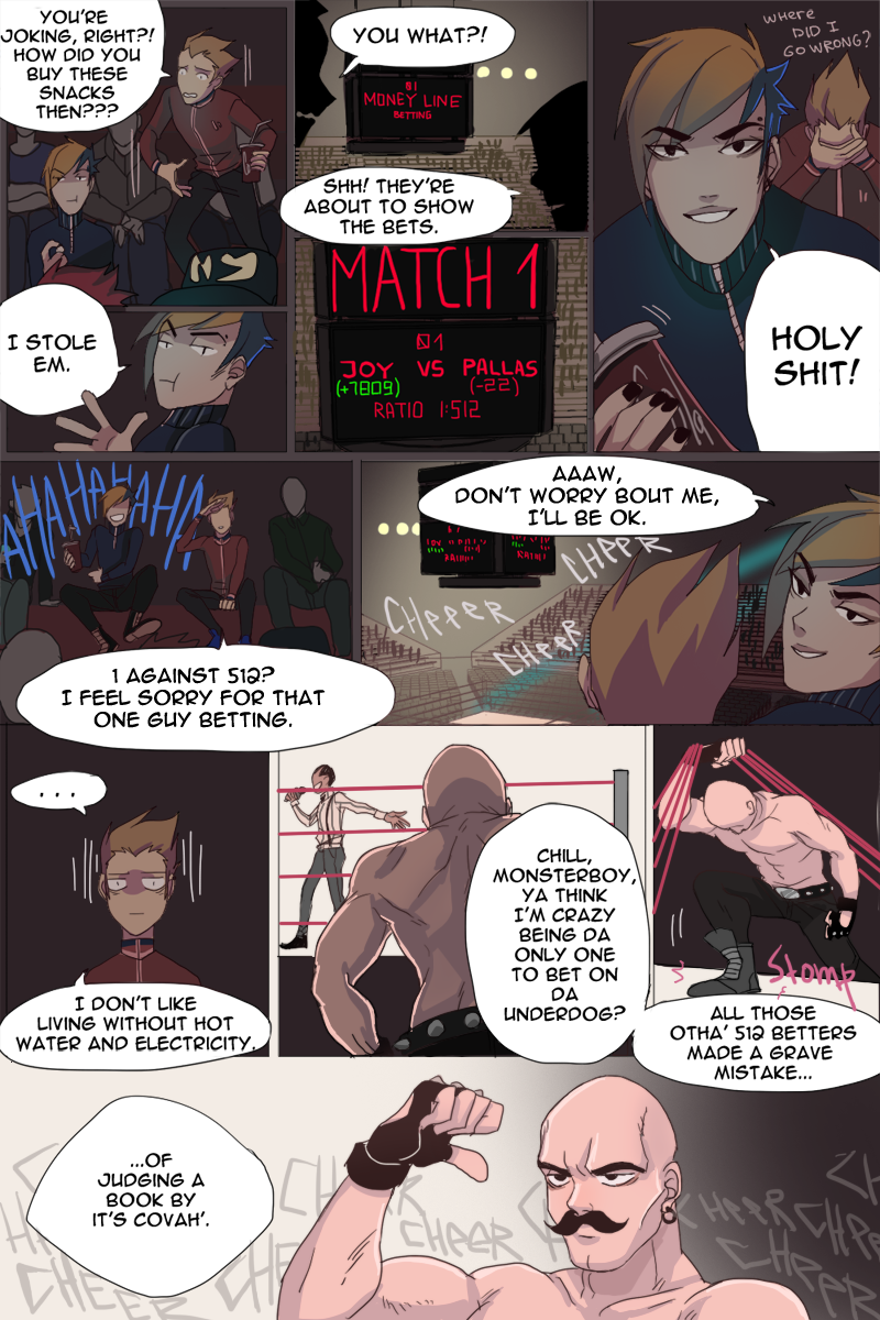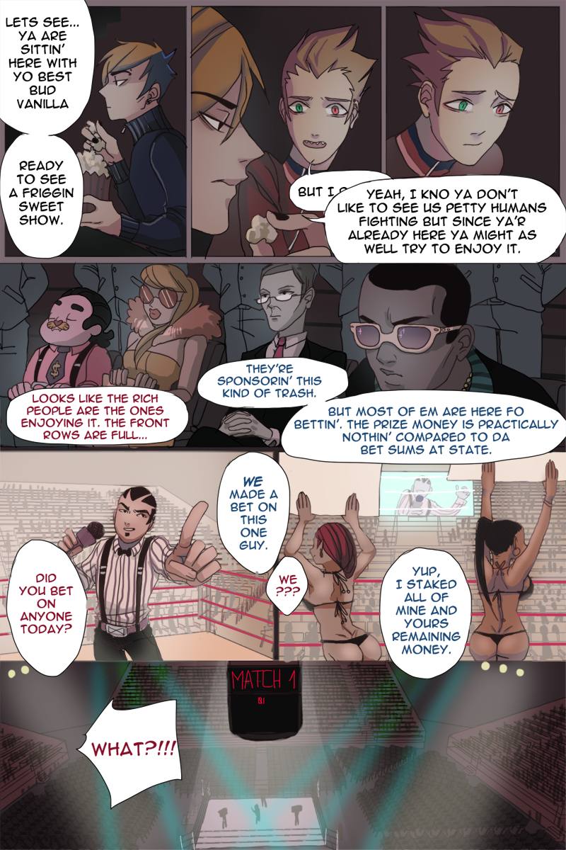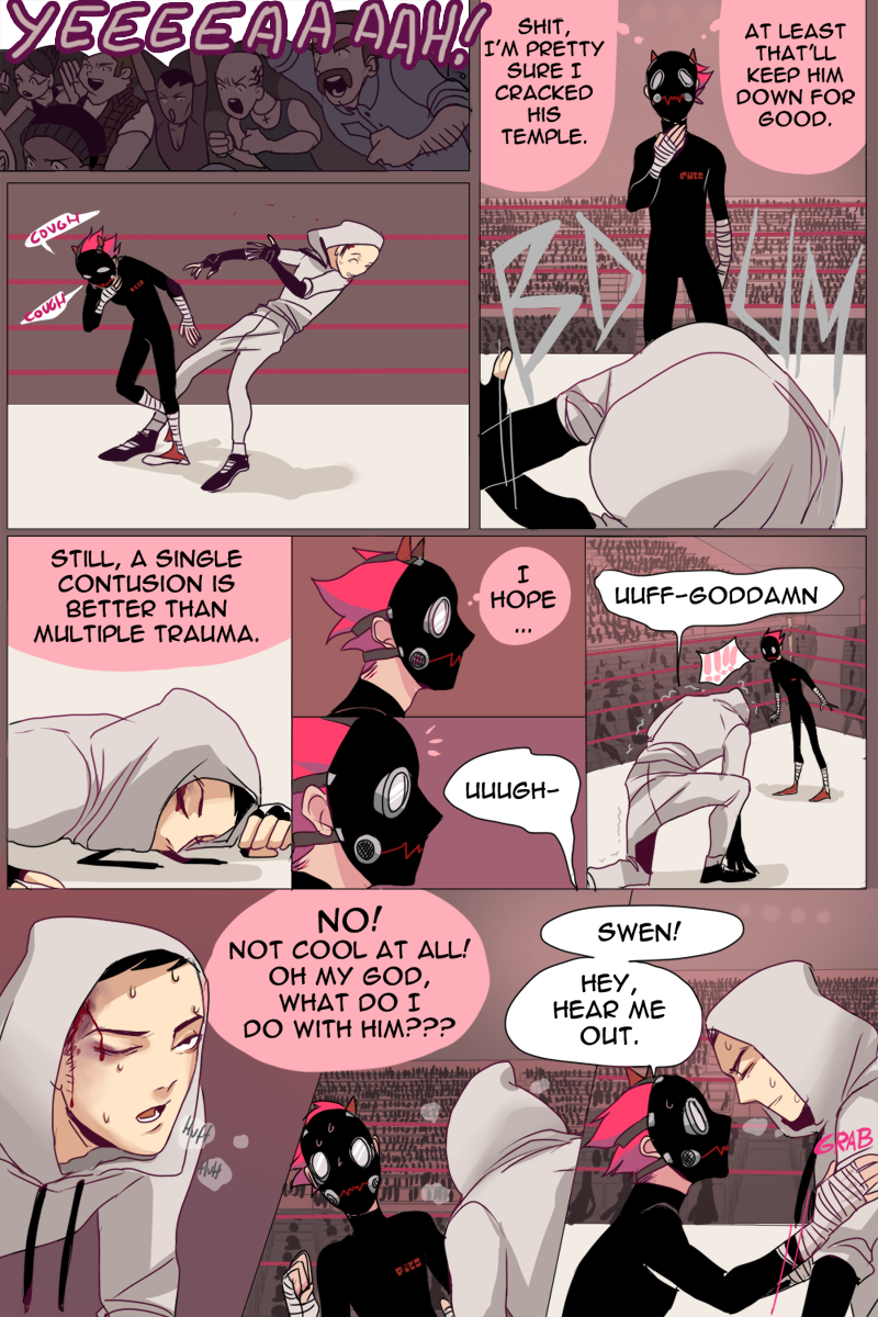 About Page 77 - a big part of the fighting ring story is excluded because of me being late with the animation. I will add a link and inform everyone when the animation is done.
