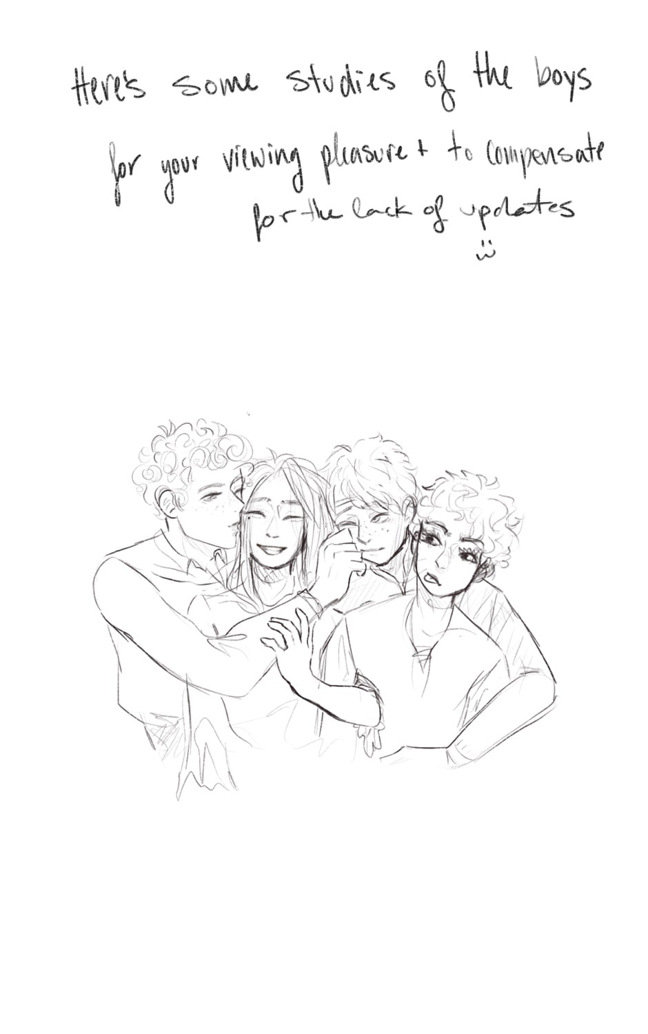 EDIT: I won’t be updating this comic much! I’ll be putting most (if not all) of my energy into their main comic “Constellation”!!! The art there will be MUCH better, since I’ve improved exponentially in the last year, but it actually has a plot! It would mean a lot to me if you would continue to support these boys in their full story <3