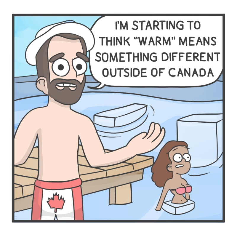 I originally drew this a few weeks ago, but then we got a heat wave in Canada! Thank God it's freezing again, now I can post this comic...