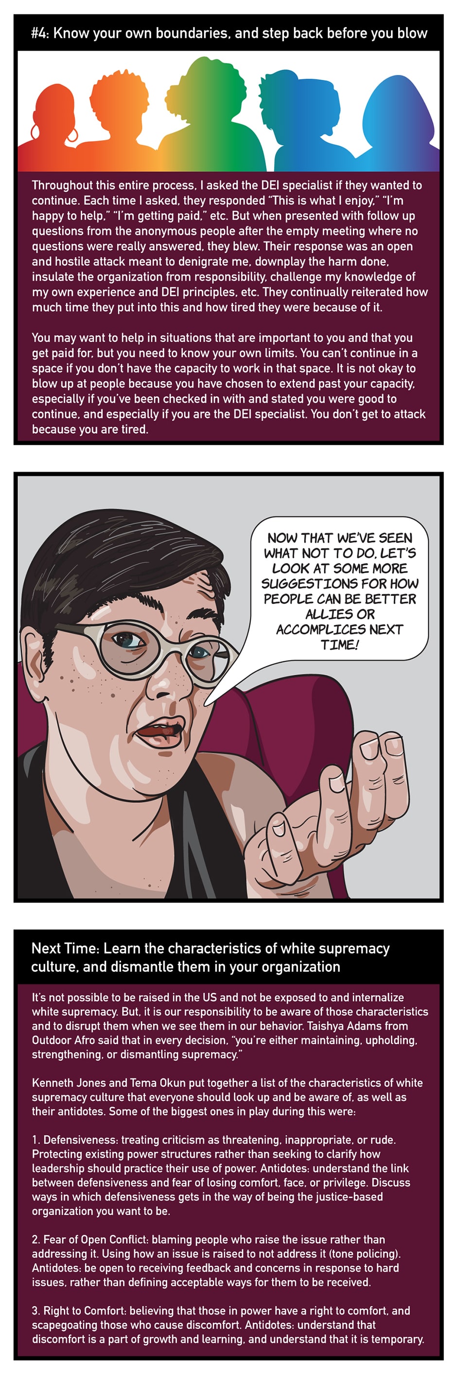 Sometimes people clearly mean to be allies, but miss the mark. This comic series aims to address common pitfalls, how they harm, and how we can do better!