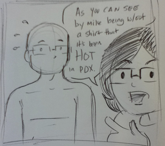 The heat in Portland is just silly. We haven't had decent rain since March. Or so I've been told. We miss Fall and rain and not being muggy and hot all the time. I also think B&N is sick of us :P