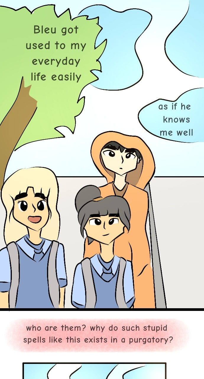 Tsuki, then, met an another spirit named Orange who guided her through the journey of her death, and to help her find the solution for the spell that Bleu implemented to her,