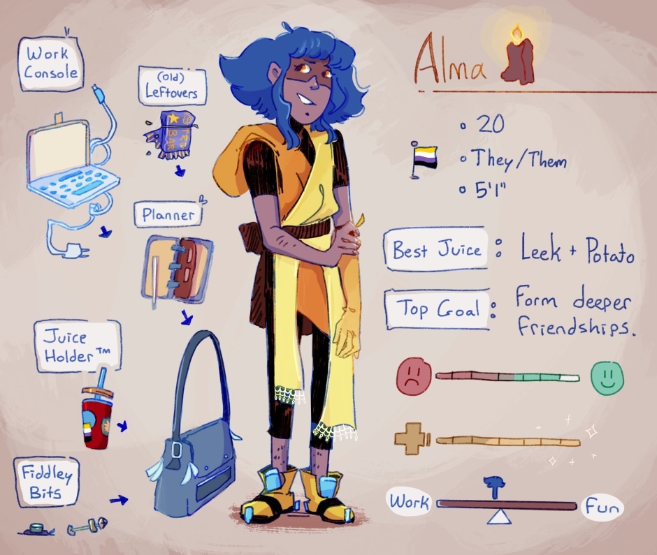 Alma is used to putting out programming fires in the deep-space town of Danicus, but when forgotten abilities flare up they tag along with their crush Reed and his terrifying twin sister to find the source... if the three can manage to keep their personal drama at bay for long enough.