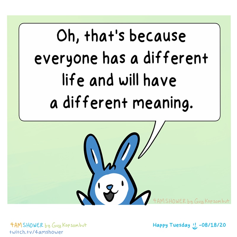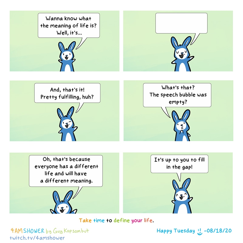 Today's smile question: What is your meaning of life? If you would like to support the creation of these wholesome comics, you can do so at my Patreon See more at Instagram. Also, if you want to see me live draw, check me out on Twitch! :)