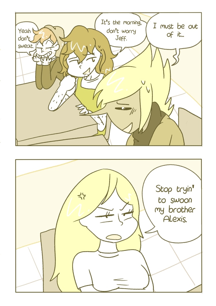Also I wanted to ask you guys, would you be interested in some merch? I was thinking of maybe doing some wooden pins of Jeff and Alexis (on Webtoons someone gave me the lovely idea of Jeff as a lemon from adventure time!), as well as some Alexis and Piper merch too of course :). I also am considering comics but not sure...Do let me know!