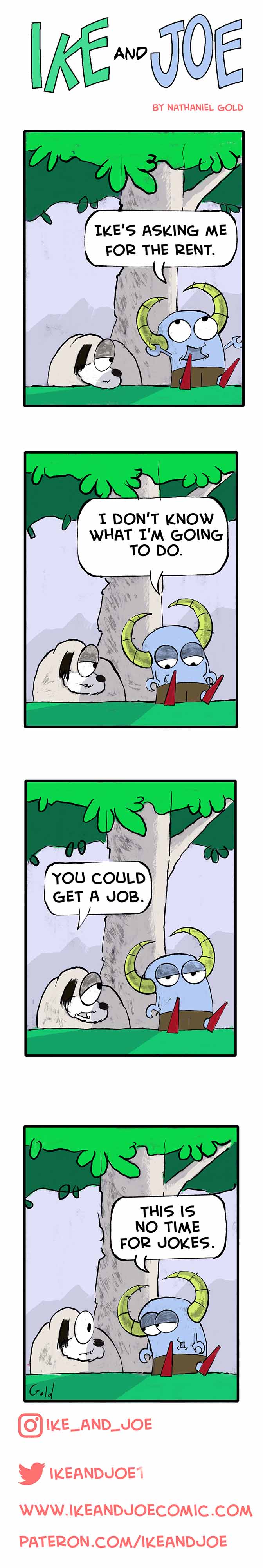 Ike and Joe is a comic strip about two young monsters and their friends dealing with everyday life in the 21st century. Inspired by the great comic strips of my youth such as Peanuts, Calvin and Hobbes and The Far Side as well as classic comedic duos such as Laurel and Hardy or Abbott and Costello all cooked together with a sprinkle of Bert and Ernie.