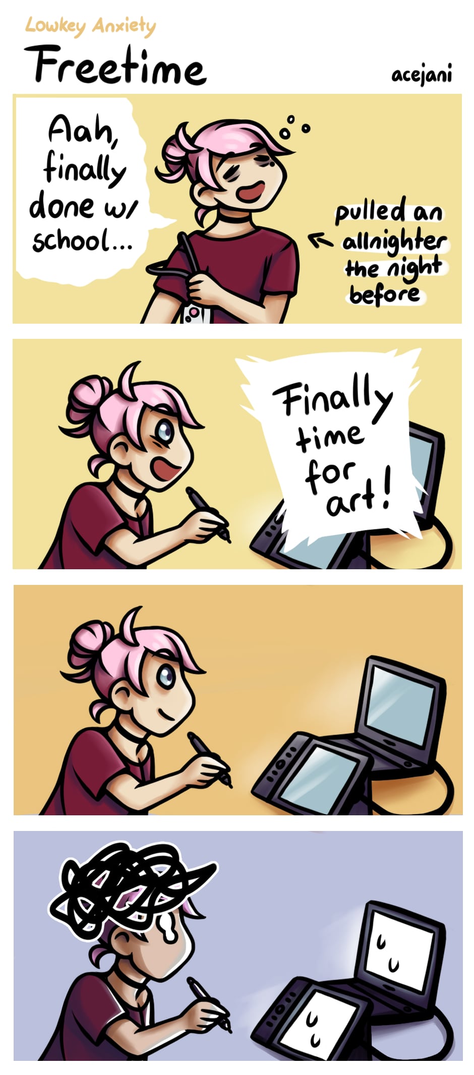 I finally graduated and got my graphic design degree!! It was hell!! Art sadly has not been easy and fun for me lately... slowly recovering tho and I hope I can update Overflow soon, too.