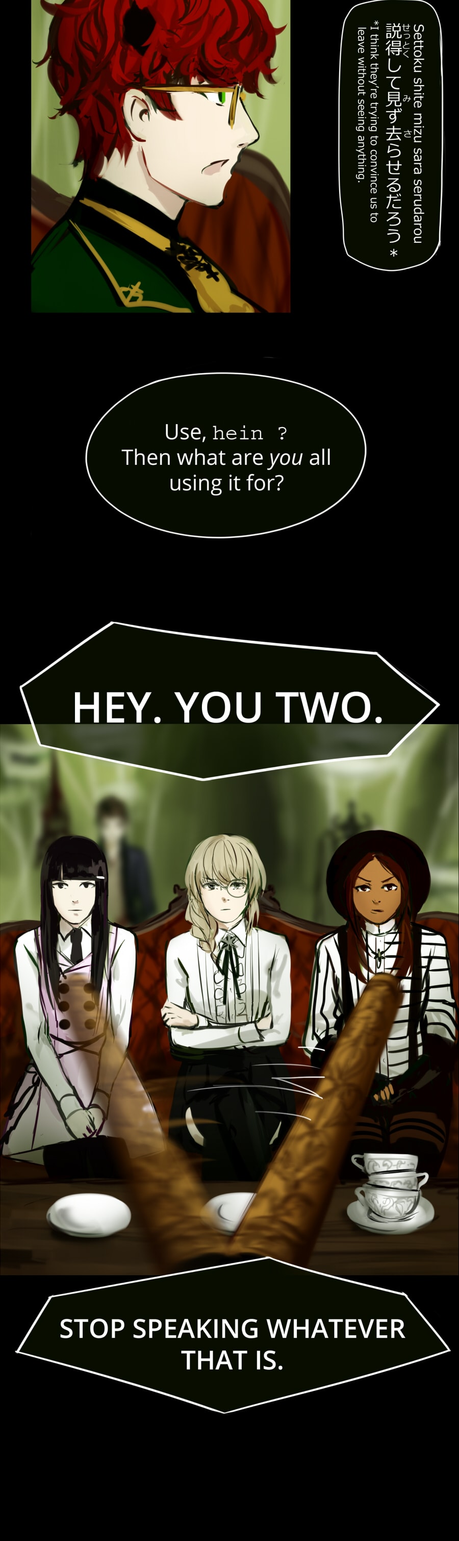 HUGE thank you to translators!! Eleanara for Japanese, Oriolie for French, and Screw It! for Filipino! This episode would not be possible without them.