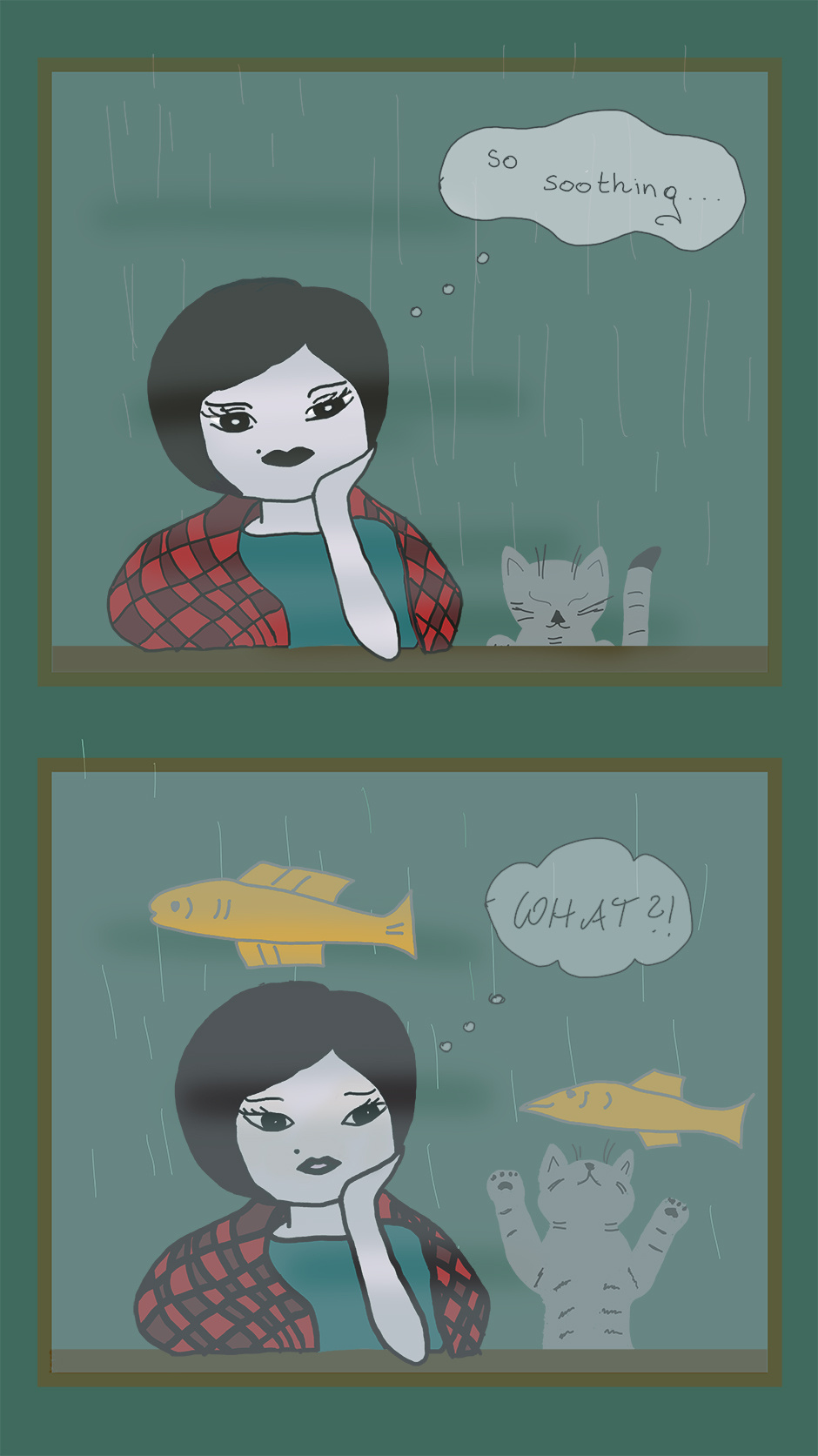 Haha, if only fish came down with the rain. :D