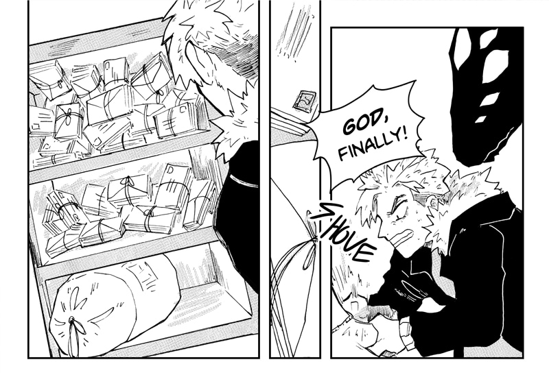RAZEL; Can they change size by magic? or by artist inability to maintain visual cohesion?? who knows! LUCA; he steals mail, the bastard