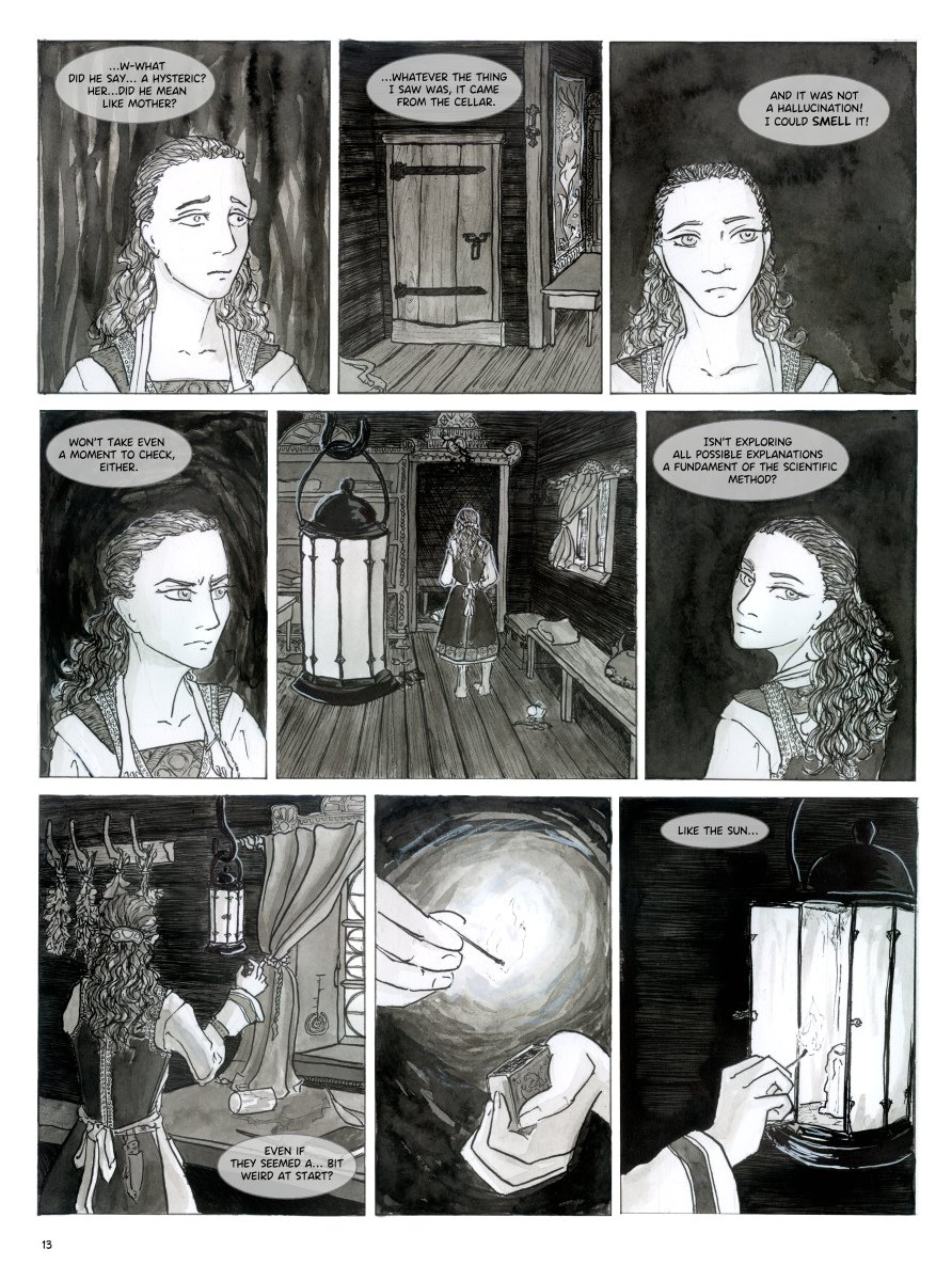 An expedition to remote mountains is going to be the experience young Adal needs to qualify for Haarden University. Unfortunately, her grandmother's old house from whence she and her father are commencing folkloristic studies hides old and alien secrets, the likes of which Adal has never even dreamed of. And what is that red stranger scurrying about in the shadows?