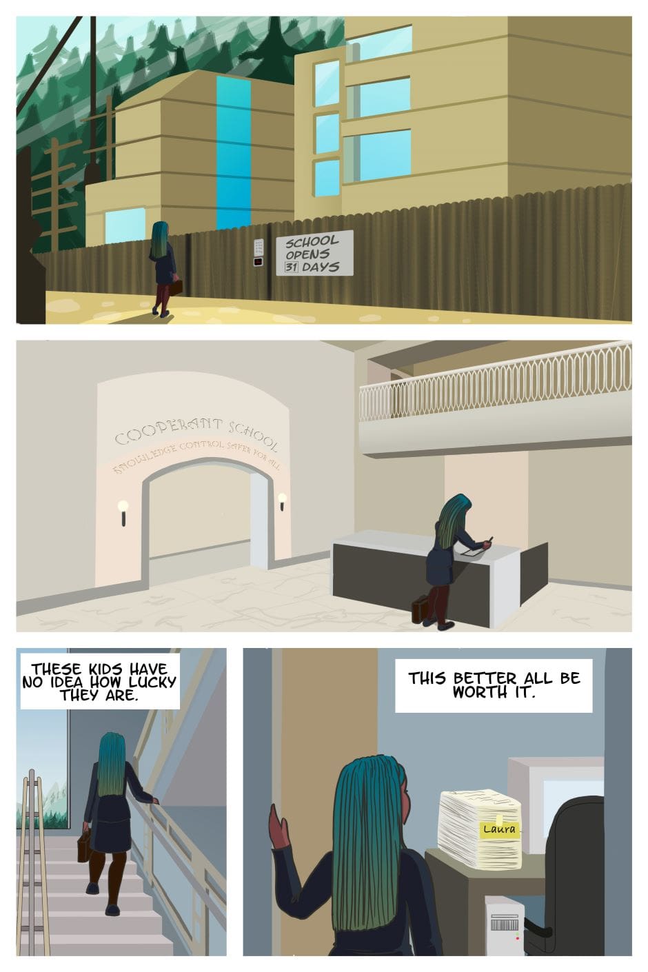 Most interviewees are desperate to get the job, but Laura went for an interview at the new, huge Co-operant school with ulterior motives.