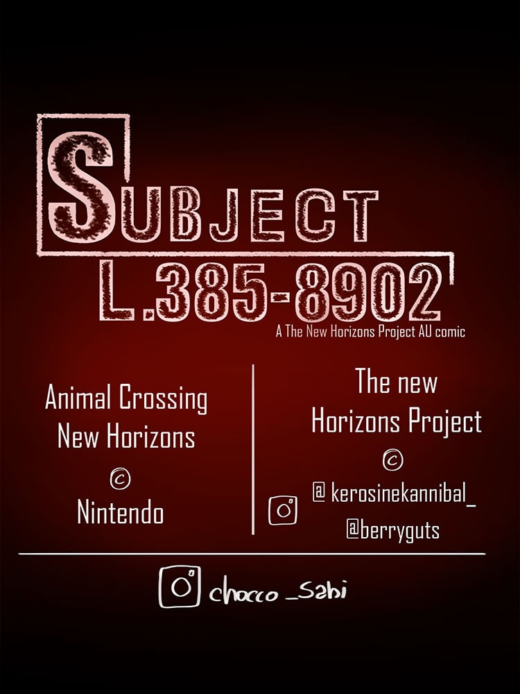 Subject L.385-8902 is a comic that happens on The New Horizons Project AU of the game Animal Crossing created by berryguts and kerosinekannibal_ on Instagram. Be warned that this AU is a horror/Thriller so expect some violence and gore.