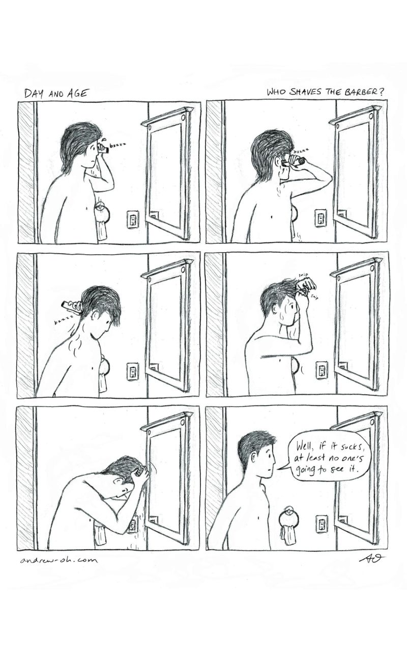 "Until someone else sees it, my head exists in a quantum superposition of having both a good haircut and a bad haircut." @dayandagecomic