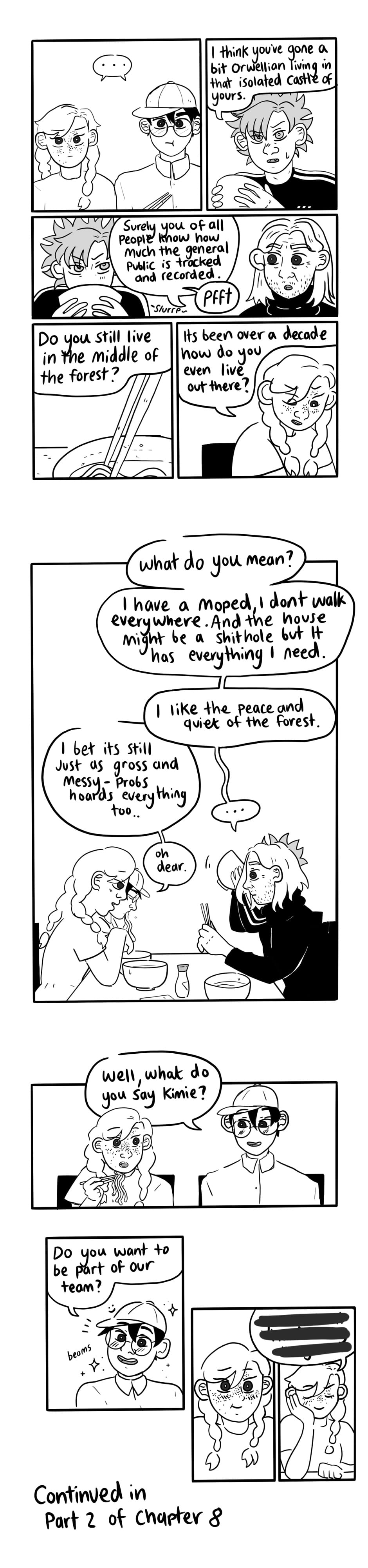 AN: hello everyone, back with the first part of chapter 8 - hope everyone had an enjoyable summer despite the circumstances TnT . Apart from working on the webcomic, I’ve picked up a new hobby! Crochet! It’s a lot of fun but also can be very distracting when your supposed to be updating your webcomic regularly so hopefully I won’t get too distracted before the next update :’) stay safe <3