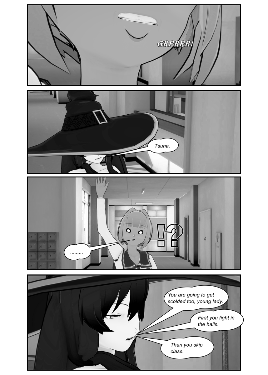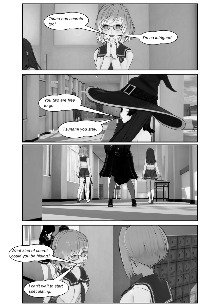 Tsuna is confronted by Witch Nurse about the secret she's hiding. The trio has finally studies for their project due tomorrow.