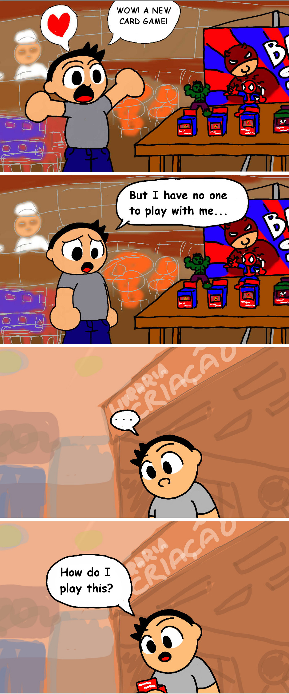There was this new Tradindg Card Game and I wanted to buy it... but none of my friends play card games! It's a brazillian card game I think, though its name is in english.