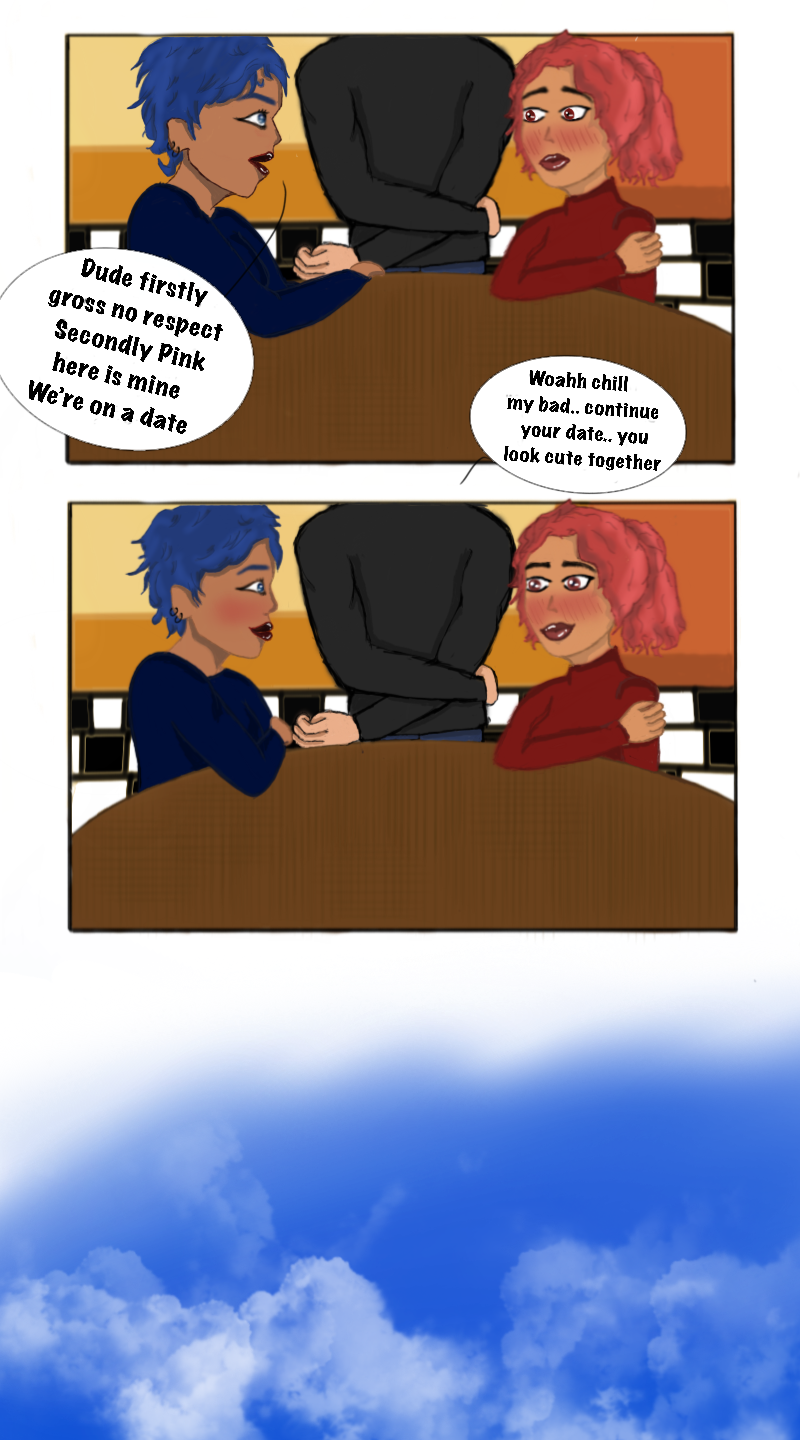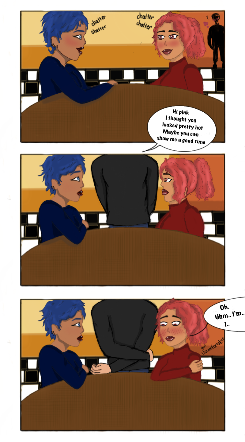 got the concept from a date I was on. I know the guys sometimes mean no harm but boy is it annoying >:(... and some better art that I colored and stuff