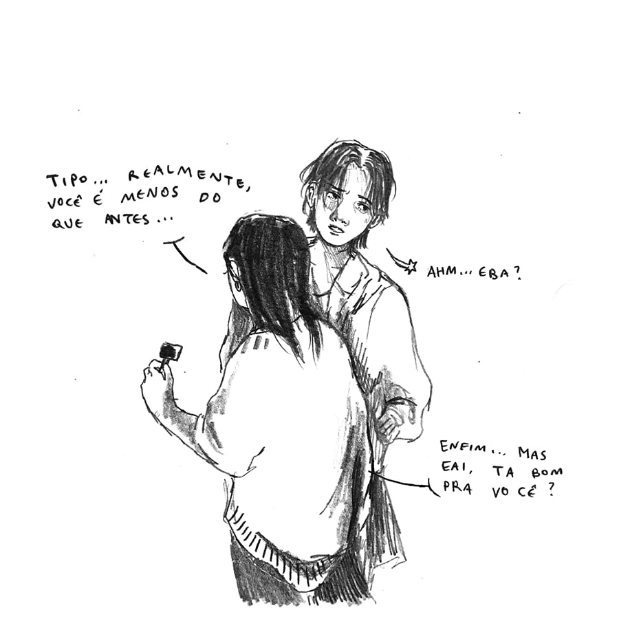 ㅤㅤQue Nunca Acaba é uma parceria entre Patricia Baik e Gustavo Nascimento, investigando a linguagem narrativa dos quadrinhos. O projeto nasce da vontade de um alívio, um respiro de aspirar romances em que poderíamos ser protagonistas. Por meio de diálogos, buscamos compreender dúvidas sobre afeto, nós e o outro. Como consequência, voltamos para o que compõe nossa identidade, nosso ser.