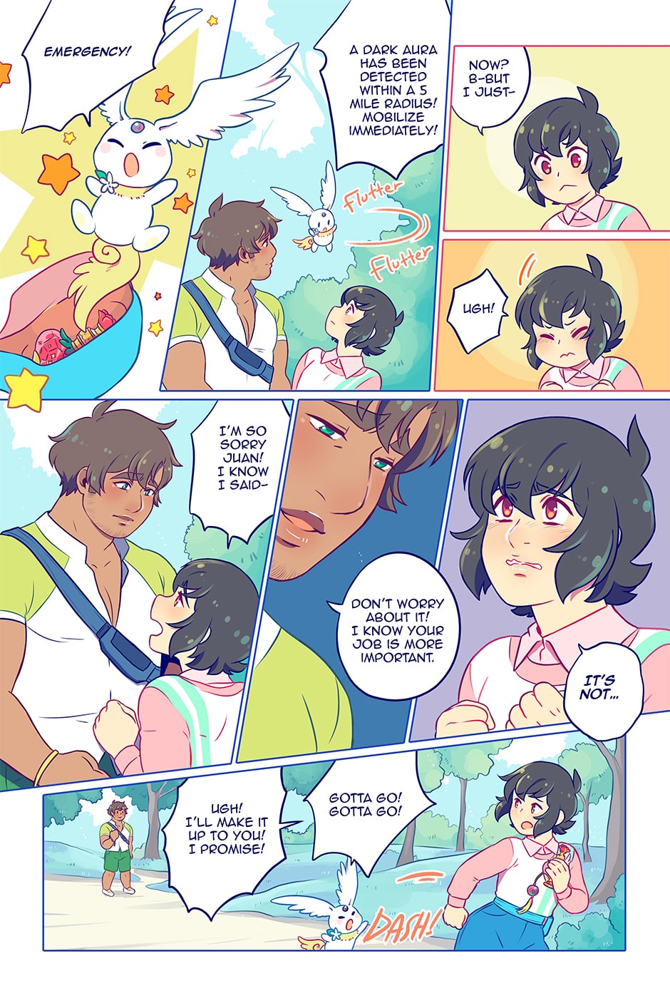 Juan’s boyfriend, Kikyou, is a magical boy—how cool is that, right? At least, that’s what Juan thought at first. But the more he learns about Kikyou’s world the harder it is to keep the fear at bay. Juan can’t stop worrying. He’s just a regular guy, no powers, no epic destiny… just a civilian with a quiet life, a tangle of insecurities, and a growing fear that he’s powerless to protect the person he loves most.