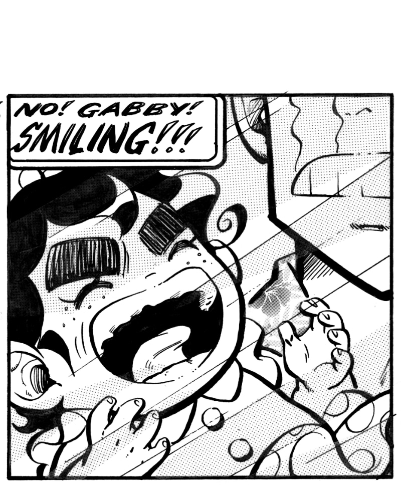 I suspect she wasn't smiling, but screaming her lungs out.