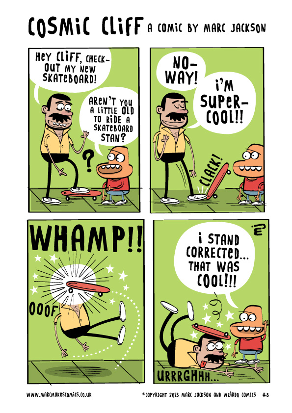 This week, Stan gets a skateboard. Old guys can ride skateboards too, can’t they?... ©2015 Marc Jackson and Weirdo comics
