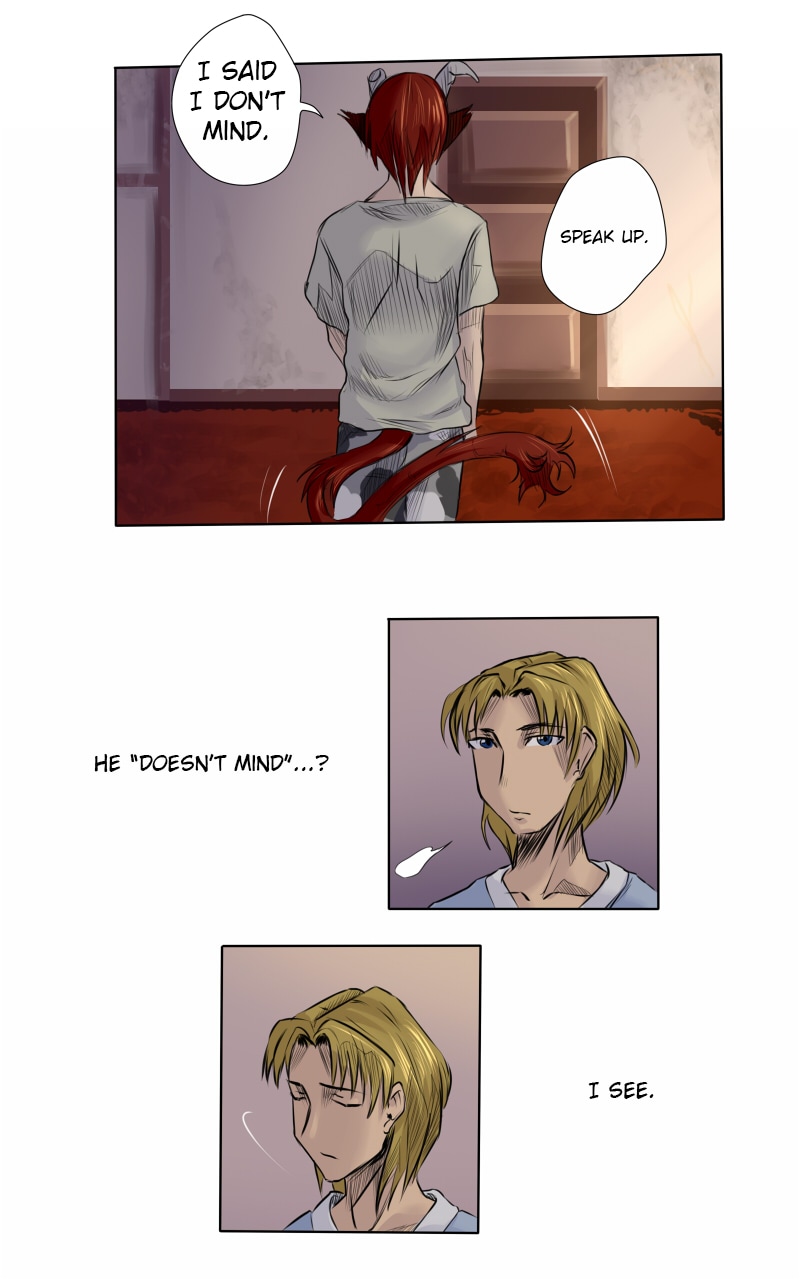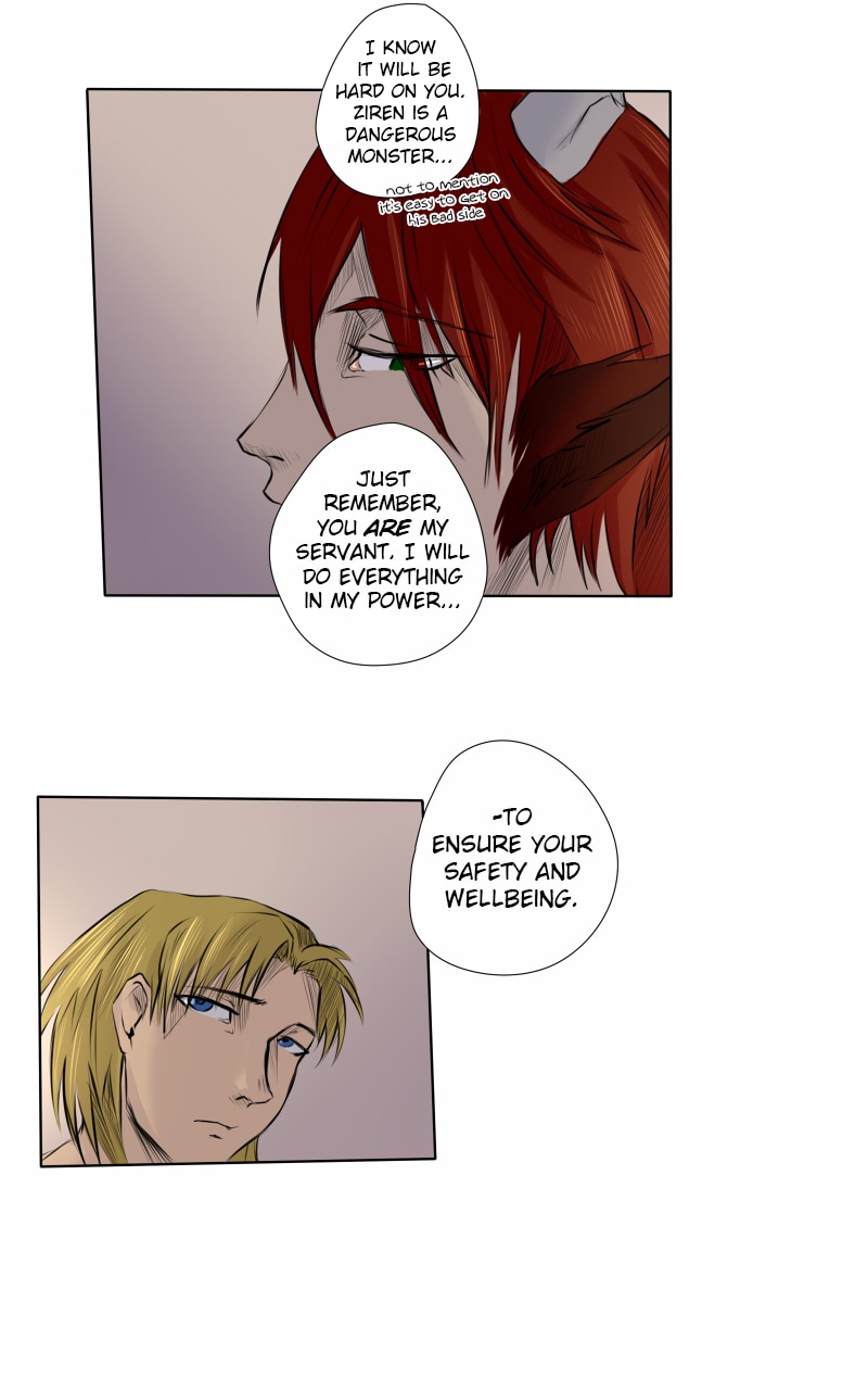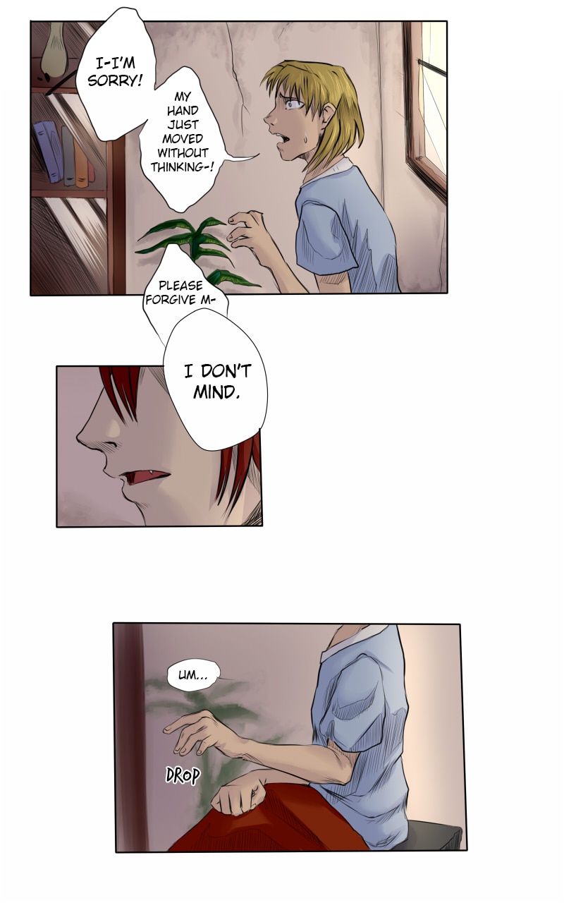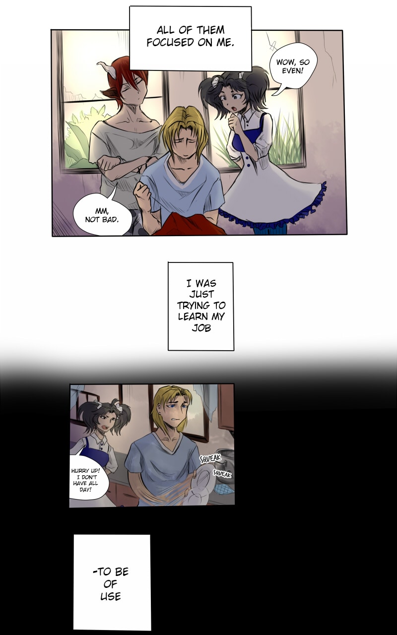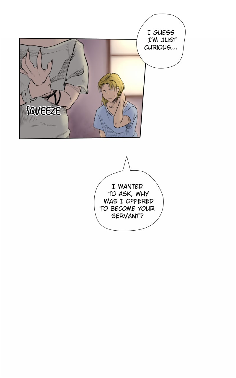 "Monster Servant" is a story following the relationship of Narke, the antisocial monster, and his newly appointed servant Tristan, the human from the outside world. As Narke figures out his feelings towards the inferior human, and Tristan learns to trust the bloodthirsty, superior predator, they each have to face the shadows of their past...