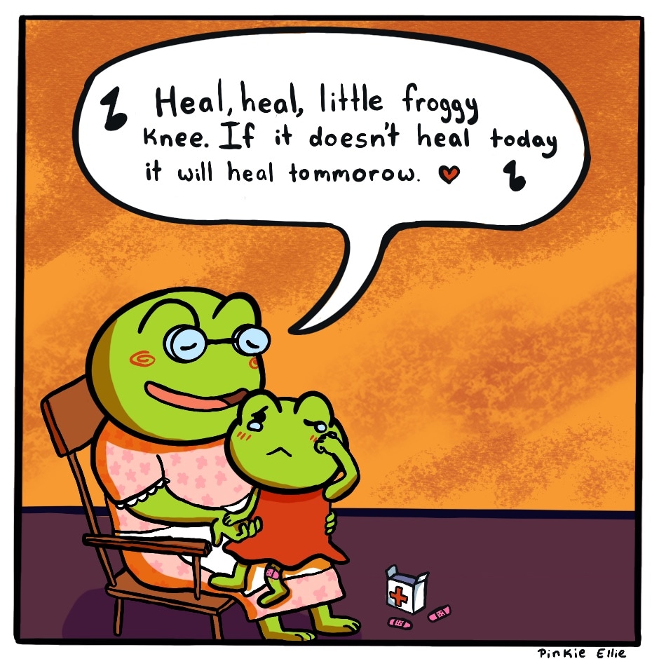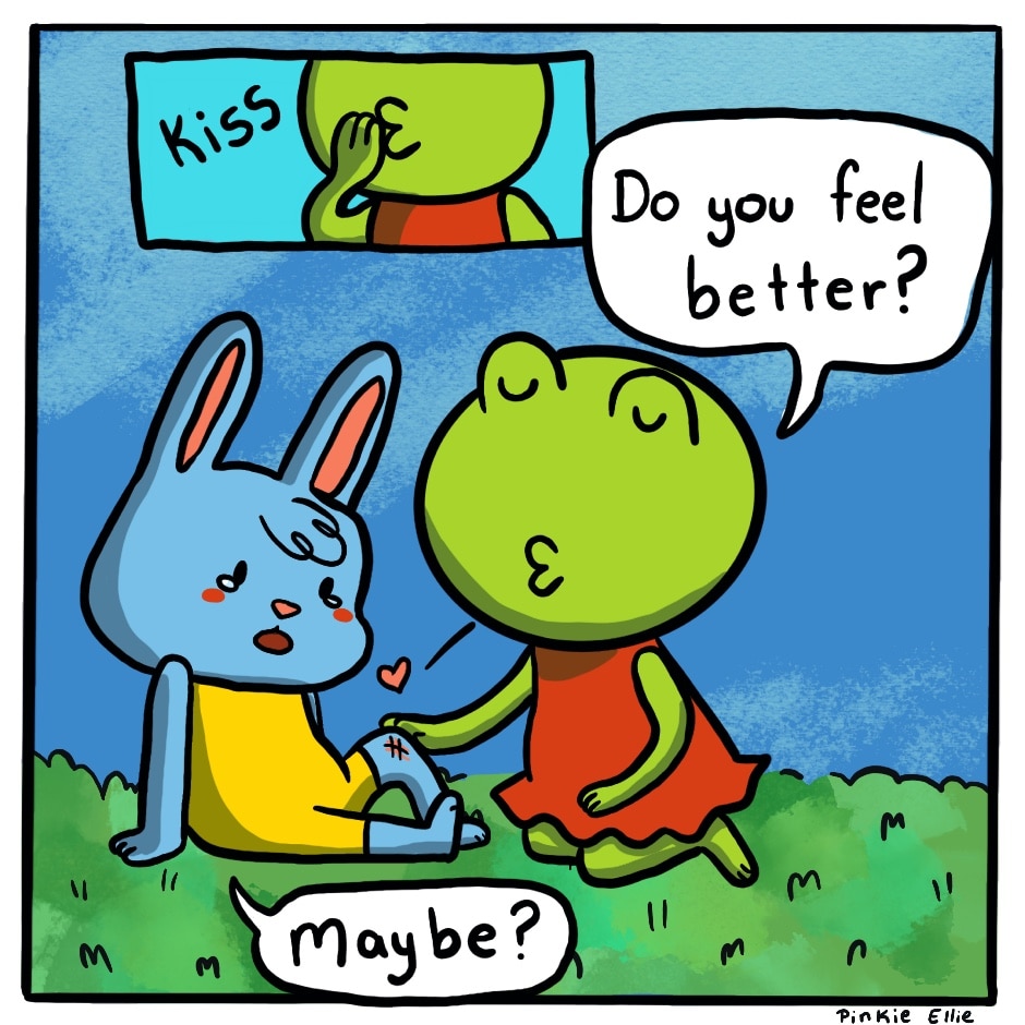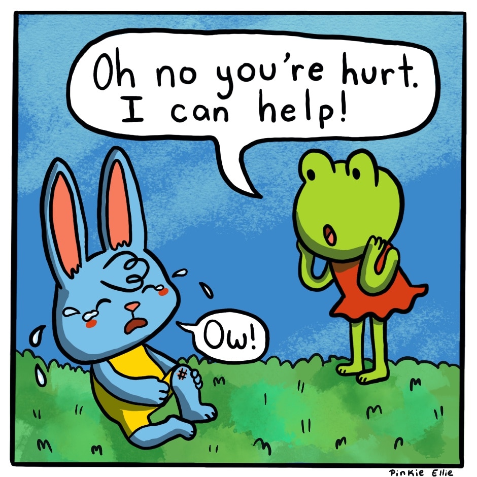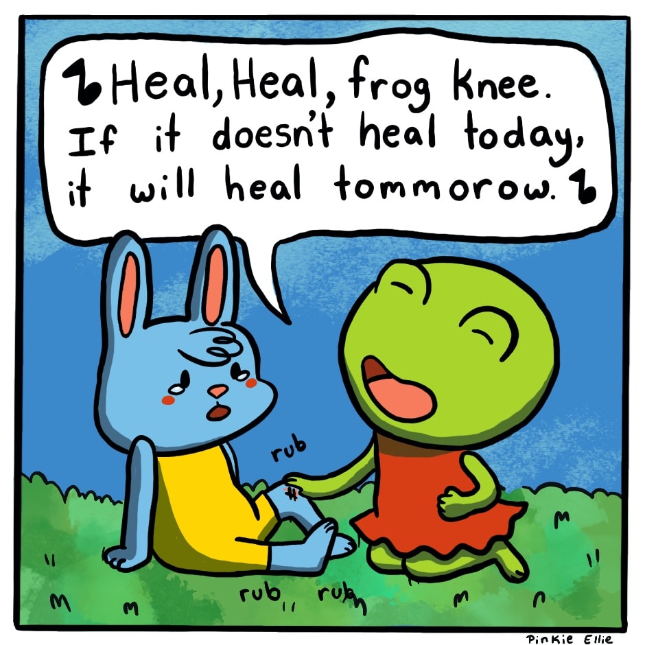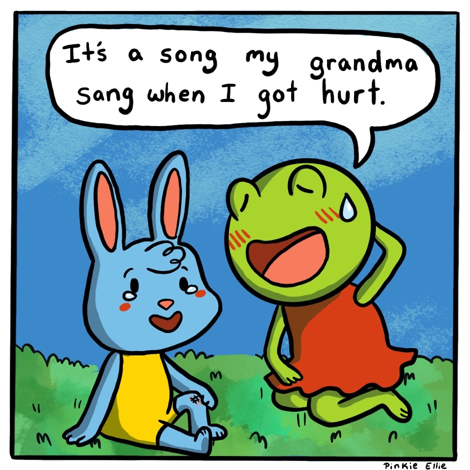 Lily frog helps bunny with his injury with a song her grandma sang.