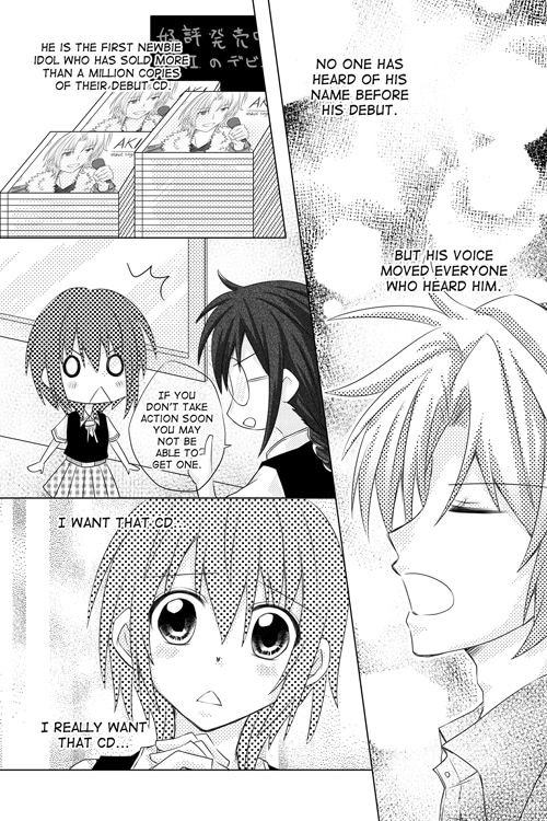 Feeling depressed after hearing the news of her favourite idol getting married, Suzune was walking home one night when she met a handsome person who caught her from a fall. He is the newbie singer who suddenly took the city by storm with his debut! With her new idol, Suzune is going to live her happy star-chasing life again~ (Note: This is a remake of the original one-shot which I drew in 2007 if you have read it before on SJ, but I am trying to make this slightly longer with better art~)