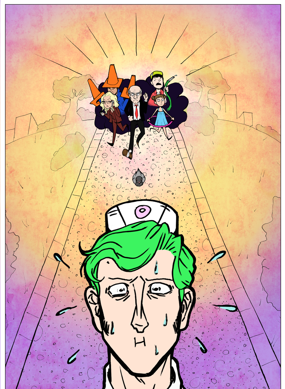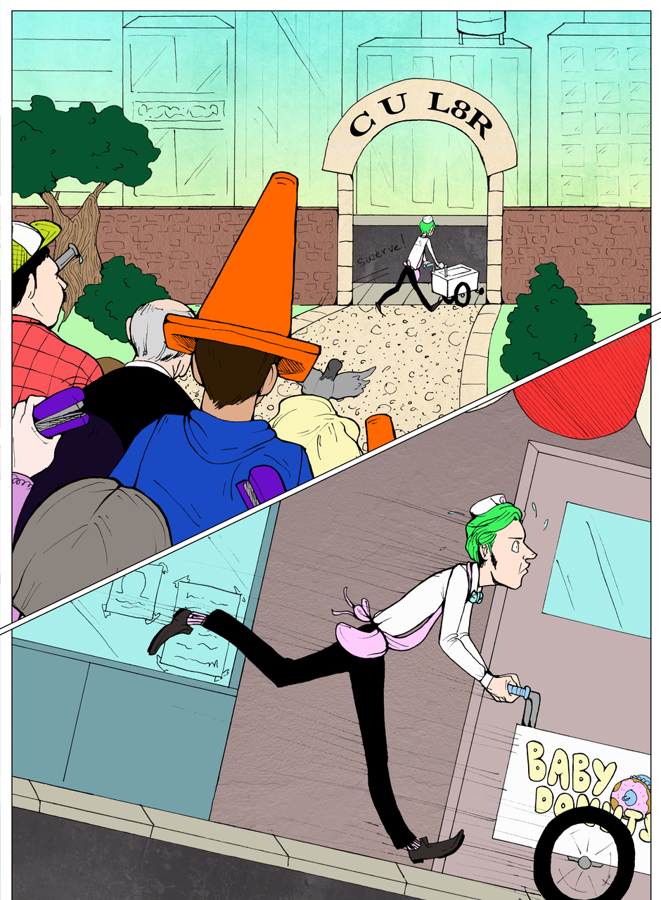 Okay so we started this project in 2013 and it took us three years to complete because we were both full time college students and working part time jobs. That being said, I hope there's a distinct difference in quality from the beginning and the end of the comic.