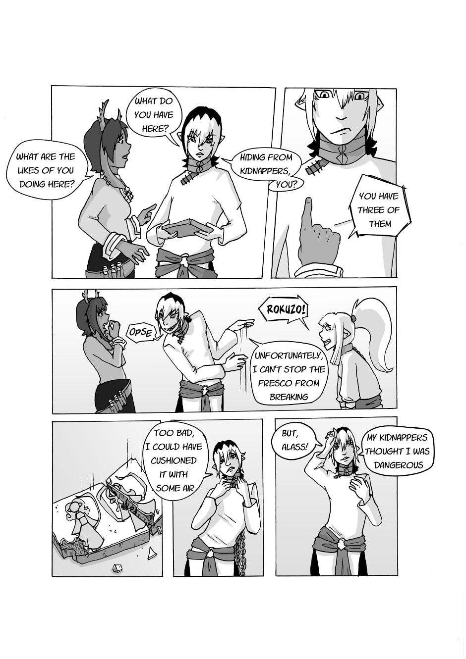 As Ahiko and Rokuzo make there escape from the masked people, they find themselves inside an abandoned temple where they try to seek refuge.