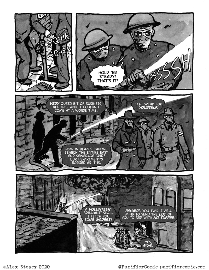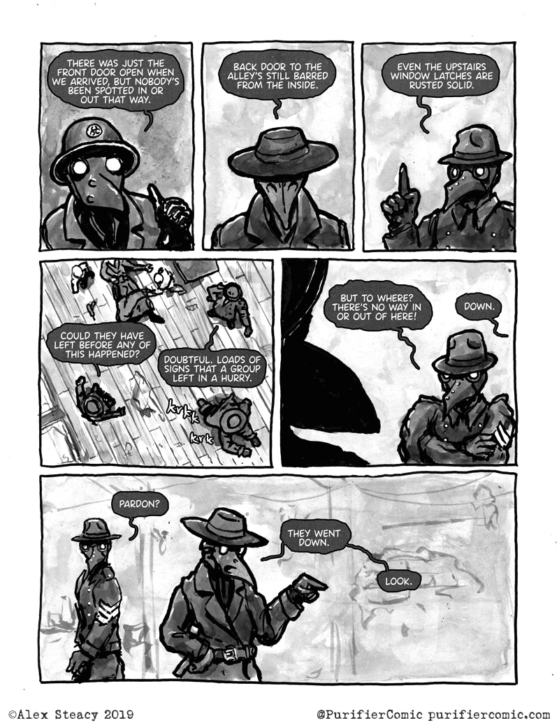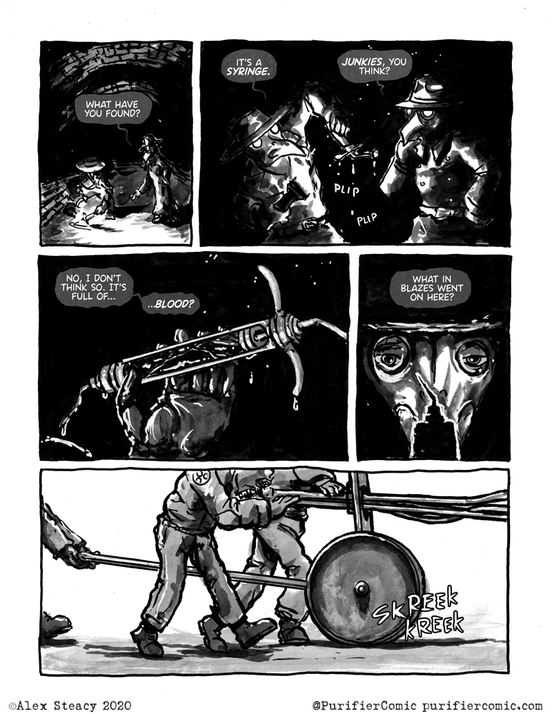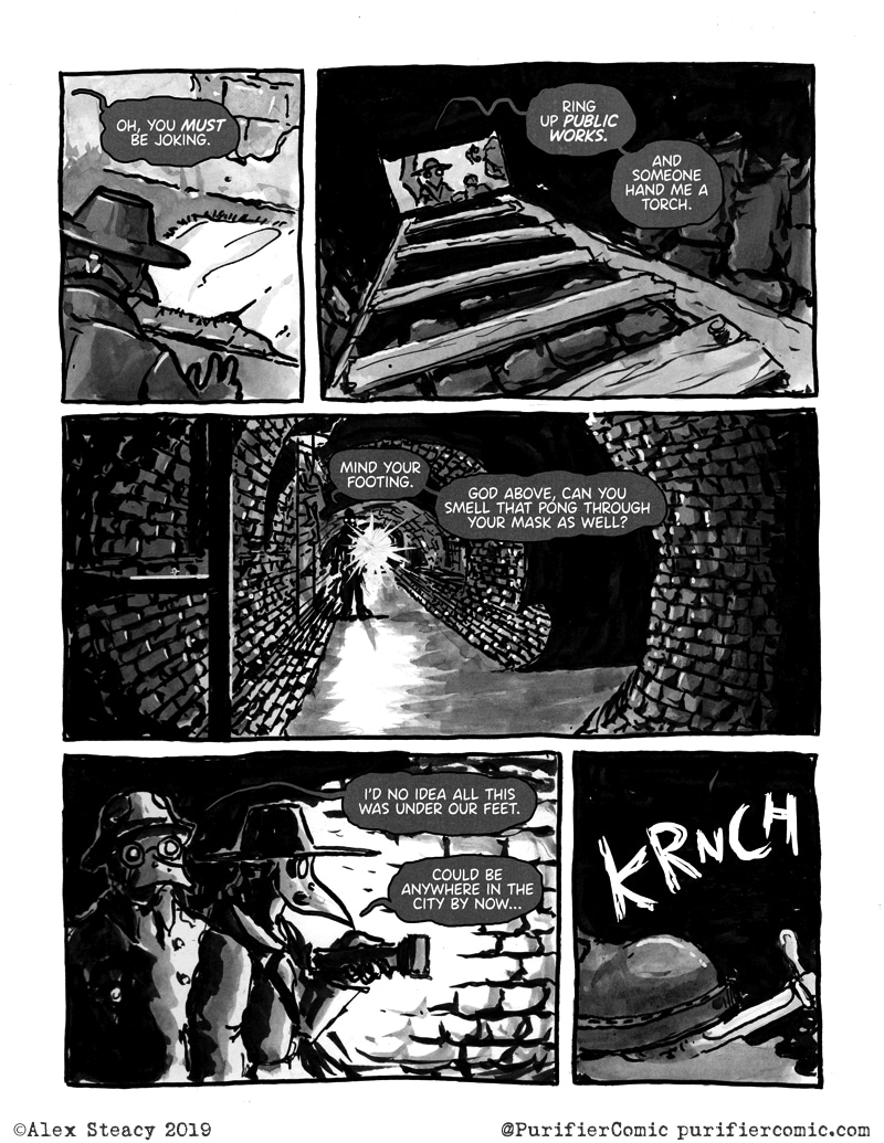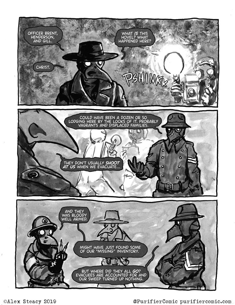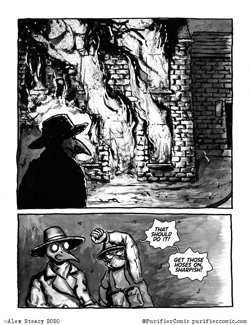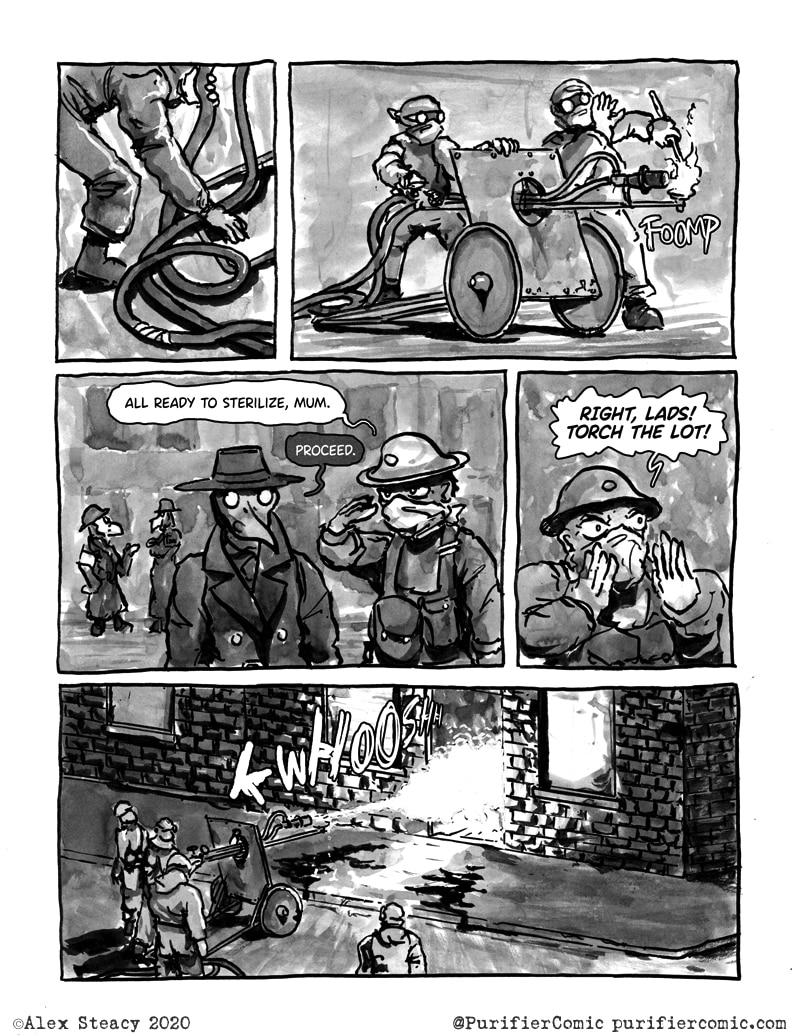 I'm liking a lot this comic! I hope for new episodes! I like the attention to detail but I wonder how much practical is the plague docto- plague police mask? Is it changed to filter the bacteria or is it decorarive?