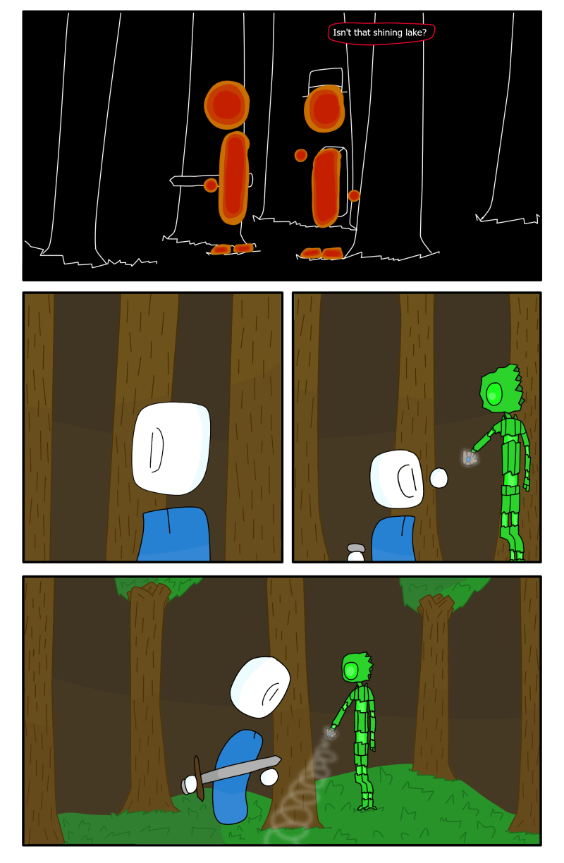 Nice, 10 pages in, also finally some action in this comic, I also tried to add a better effect to the creatures wind glove, also today's messed up panel is... well this week the panels weren't really that messed up so the partially messed up panel is panel 4 with the protagonist's pointy head.