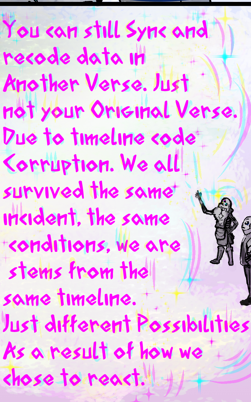 Fractal!Sans is causing trouble in the Multiverse. Scattering Au Characters across Undertale and planting Seeds of Darkness along the path of the Underground. Can this misfit group of Hooligans clean up after '3' aka Fractal!Sans. Why is he making enemies of Nightmare and Error? He must have a death wish. Follow Brawler!Sans aka '2' and Homunculus!Sans aka 'Q' as they meet versions of themselves from Across the Multiverse and try to unravel the reasoning behind 3's actions.